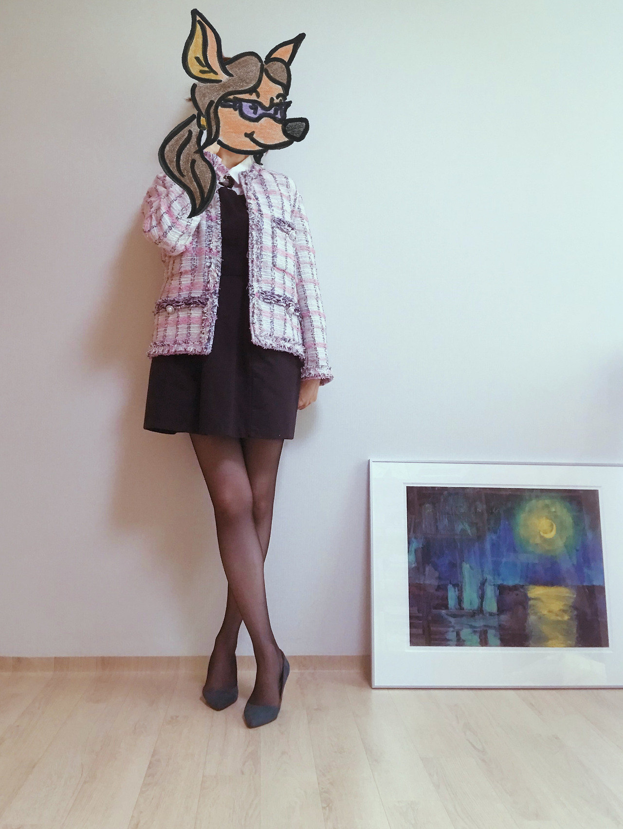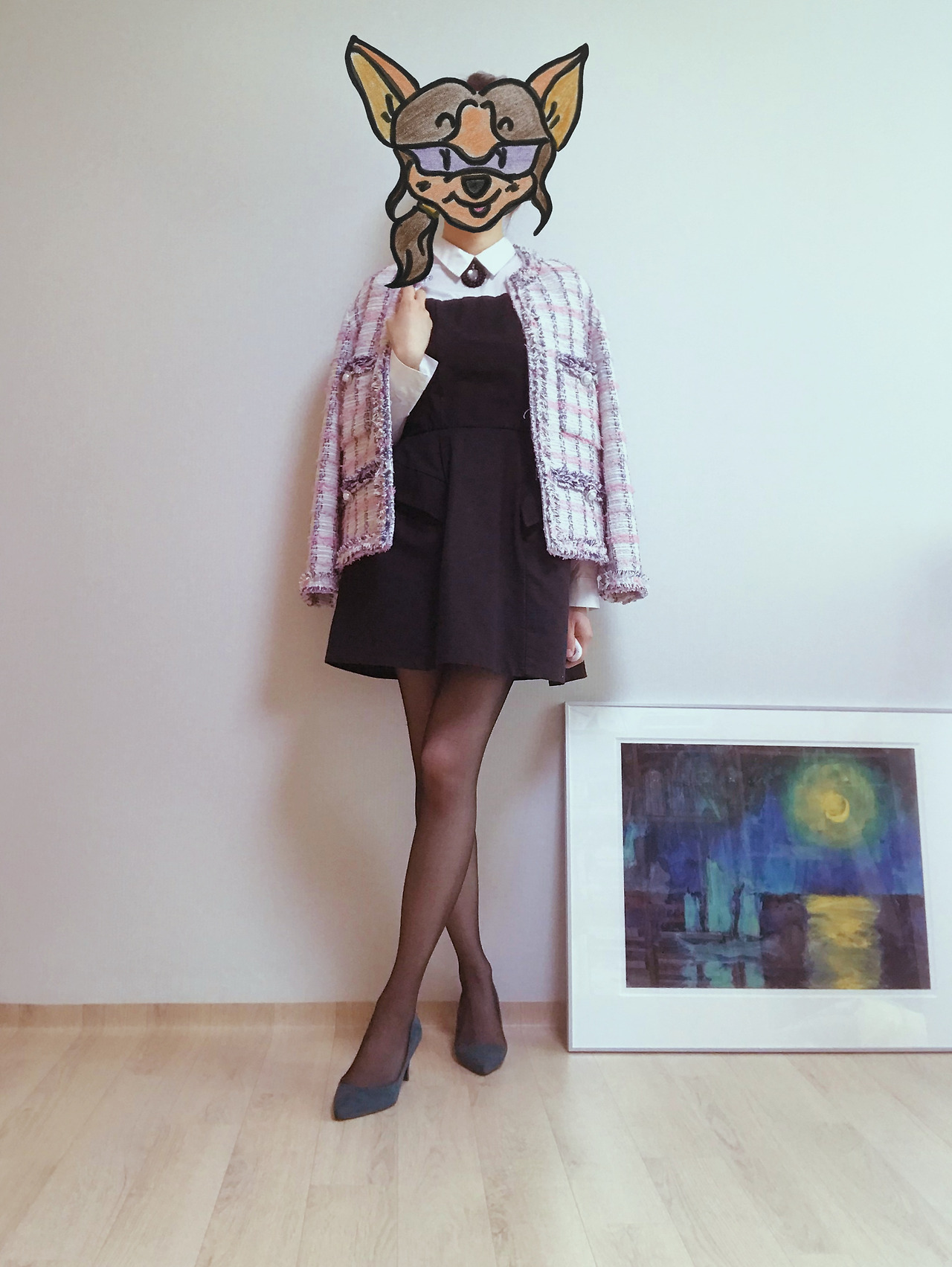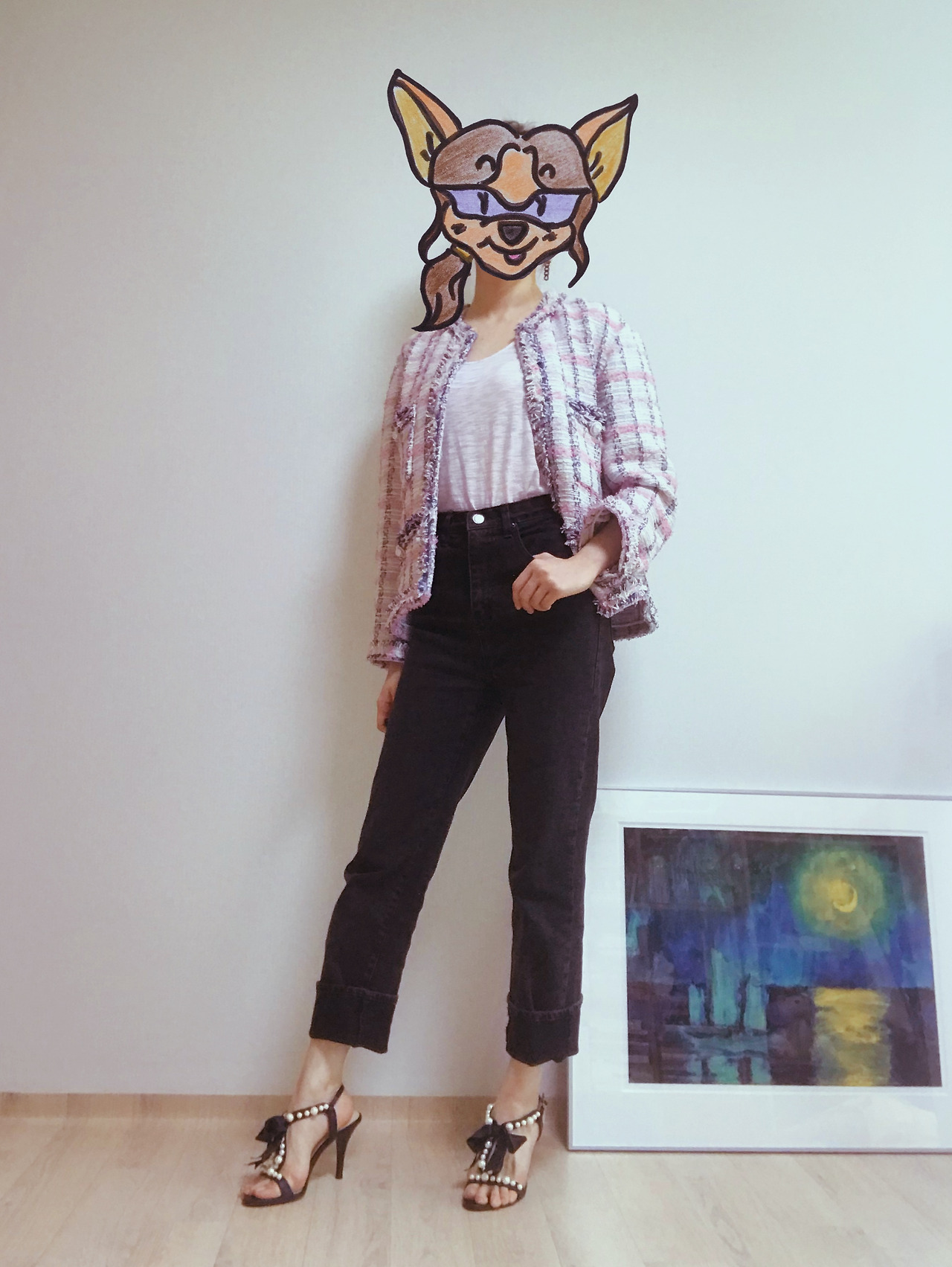 마지막으로 트위드 재킷을 초록창에 치면 연관 검색어로 최소 3위 안에는 뜨곤 하는 #하객룩 을 코디해보았다. 재킷 안에 받쳐 입은 원피스는 이삼십 대 직장인 여성이라면 누구나 한 벌쯤 가진 평범한 블랙 미니드레스인데 이 트위드 재킷을 걸쳐서 격식 있는 자리에 어울리면서도 센스 있는 룩을 연출해보았다. 코로나 때문에 결혼식장에 직접 갈 기회 자체가 별로 많지 않은 와중에 괜히 옷 때문에 신경 쓸 거 없이 집에 있는 옷을 이렇게 활용하면 되었다.