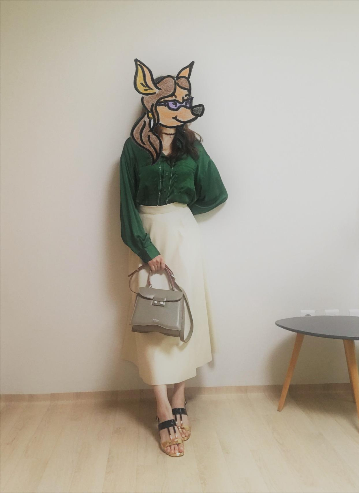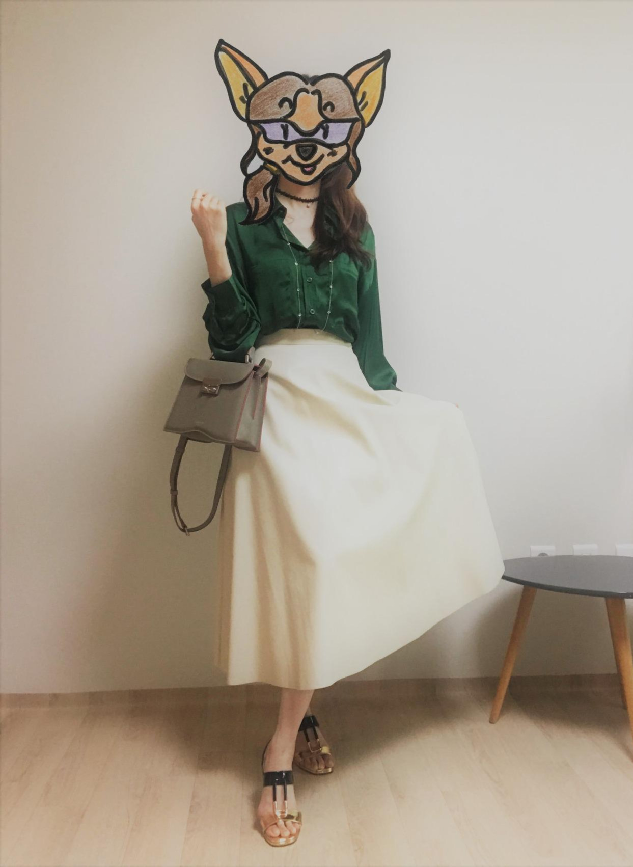 Styling tip - 원색 블라우스를 하나쯤 갖고 있다면 하의는 기본 아이템 중 무엇을 매치해서 입더라도 근사한 룩이 완성된다. 나는 흰색을 워낙 좋아해서 하의도 흰색 계통이 많다. 흰색 정장 바지와 크림색 플레어스커트에 각각 입어보았다. 크림색 플레어스커트는 가을과 겨울에 내가 특히 즐겨 입는 아이템이다.