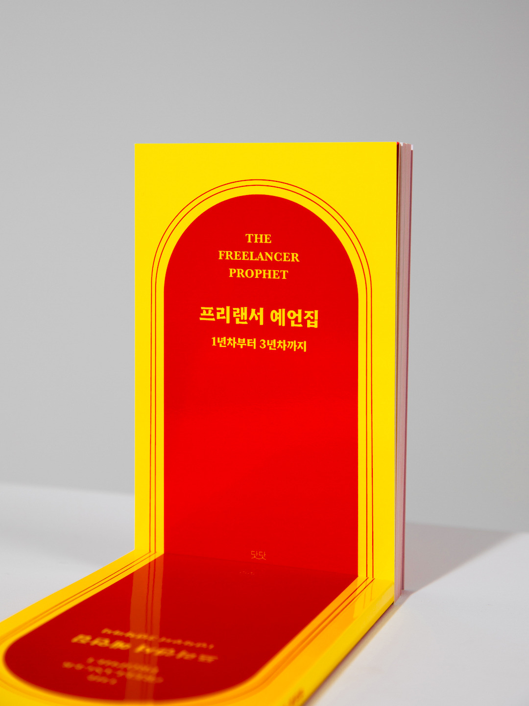 덕분에 뉴스레터를 봤던 분들에게도 의미가 있는 책을 만들 수 있었어요. 공을 들인만큼 인숙 대표님을 몰라도 서점에서 이 책을 발견한 분들은 구매하고 싶은 마음이 들게끔 독자층을 더 넓힐 수도 있었고요. 만들면서 나름대로의 자신감이 있었기 때문에 프리랜서 예언집은 표지에 저자 이름도 안 넣었어요. 서지정보를 봐야 알 수 있죠. 사실 예언집이라 '노스트라다무스'가 아닌 이상, 그 누구의 이름이 있어도 이상하겠구나 생각하긴 했어요. 따라서 컨셉을 정하고 나서 바로 저자 이름은 표지에 넣지 말자고 이야기하기도 했습니다.