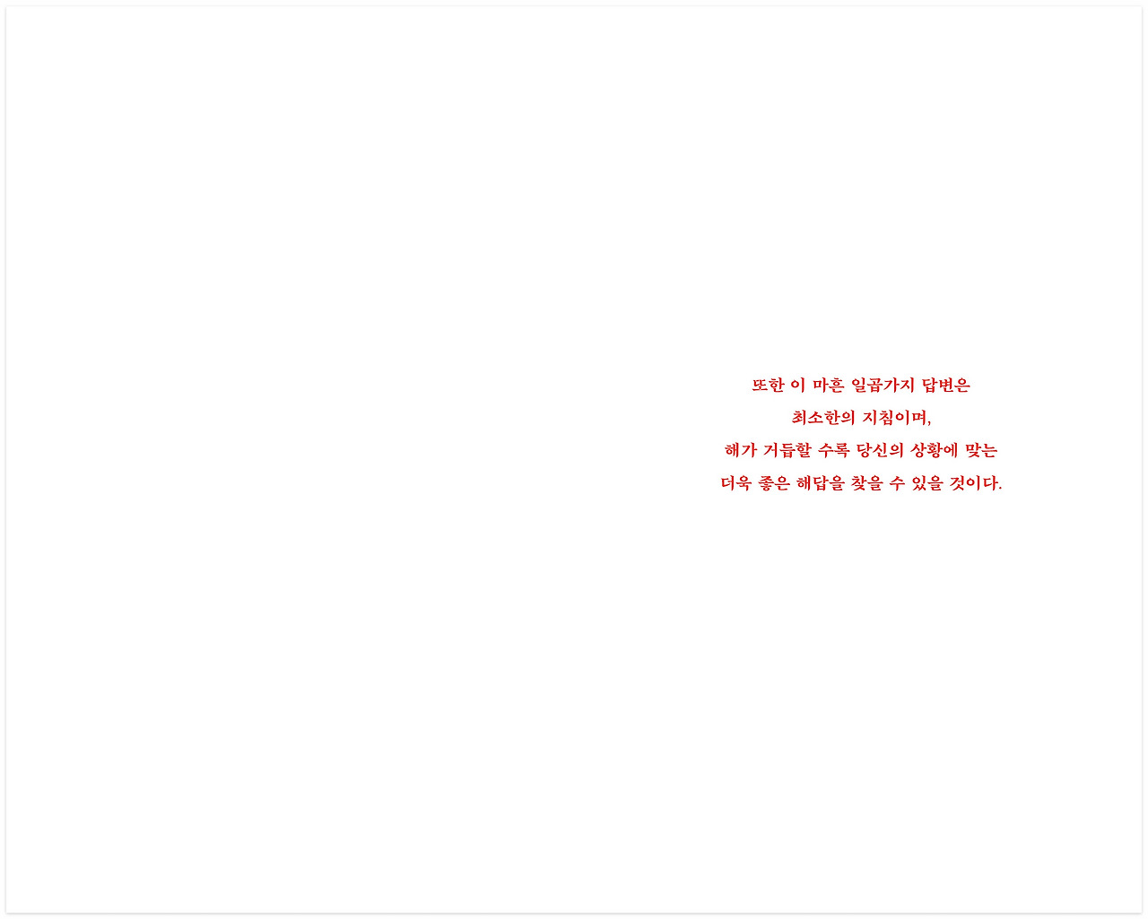 표지는 이 책이 당신에게 새로운 길을 제시해 줄 거라는 의미를 담아 만들었어요. ‘문’이라는 키워드를 생각한거죠. 이건 저만 아는 사실인데, 한편으로는 ‘비석’에 새겨진 문구같이 오래전부터 전해져 내려오는 말 같이 느껴지길 바란 것도 있었습니다.