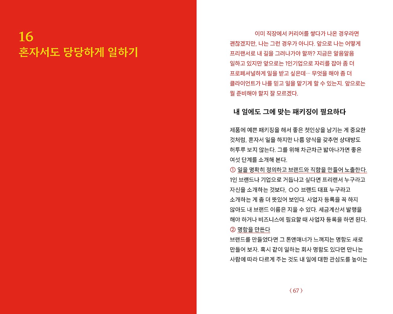 프리랜서 예언집의 경우엔, 딱 이거였죠. 책장 한켠에서 나를 기다리고 있는 비법서. 누가 언제 썼는지 모르겠으나, 팔락팔락 책장을 넘기다 보면 어느새 새로운 나로 거듭나게 만드는.