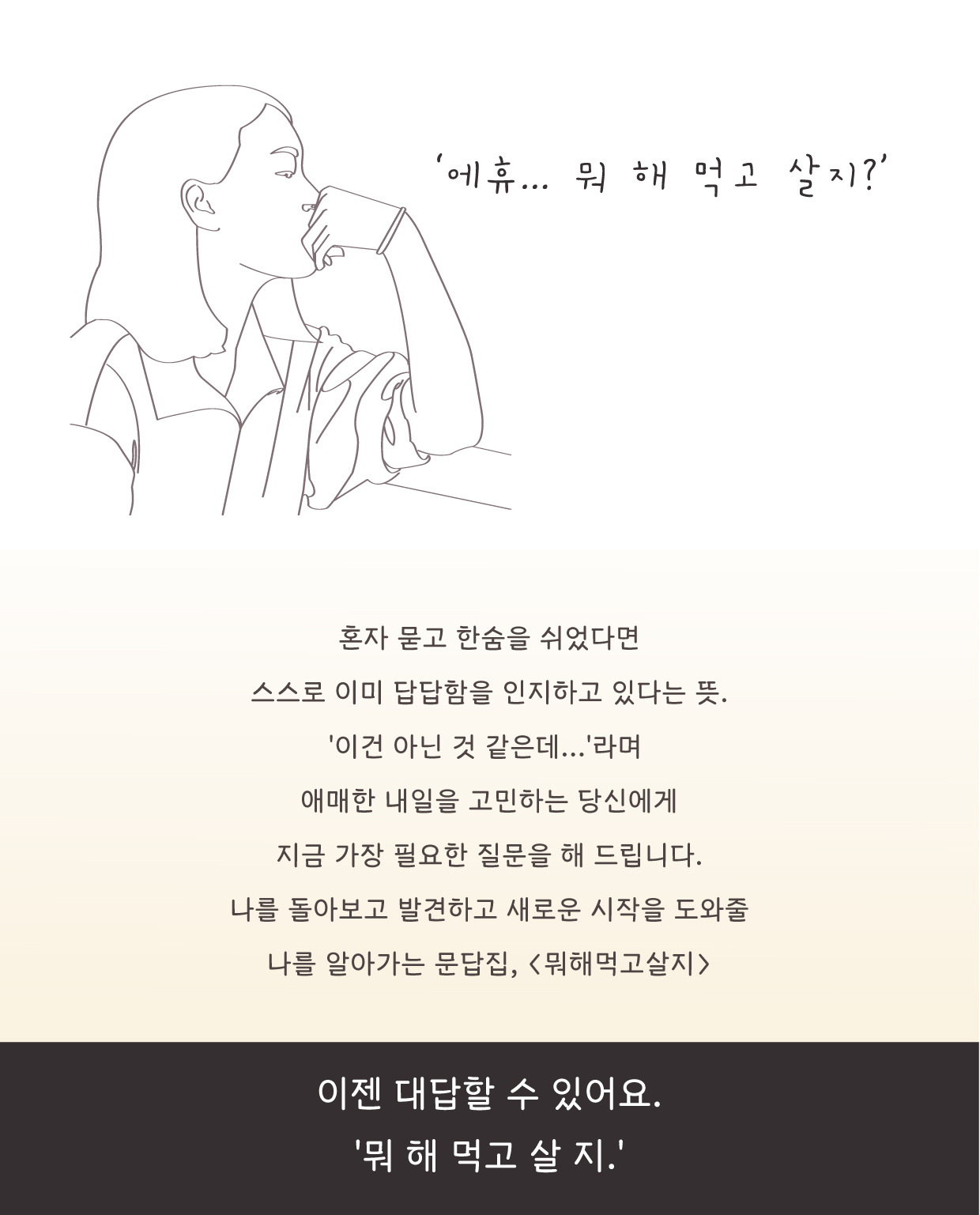 [뭐해먹고살지]는 정리를 도와주는 책입니다. 시작점에 서서 방향을 조준하고 나아갈 수 있게 해주죠. 물론 실행은 본인의 몫이지만, 딱 그 전까지는 해줍니다. 한 발 떼기 전까지.