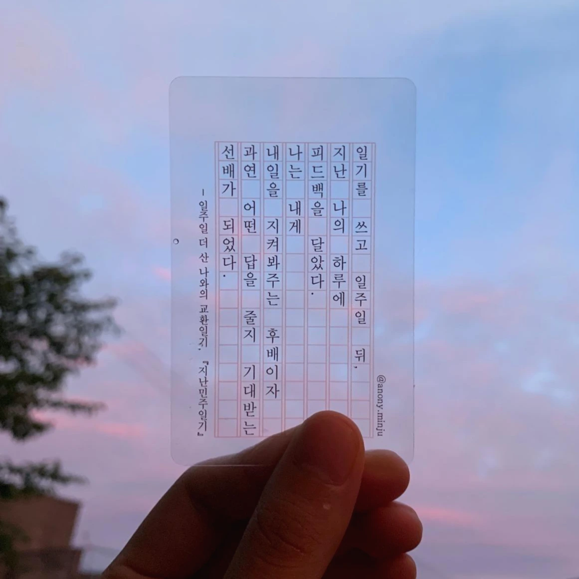 일기 쓰고 일주일 뒤에 다시 한번 제가 답신을 해주는 형식으로 나와의 교환일기를 썼죠. 하면서 즐거웠고, 엮으면서도 즐거웠습니다. 굿즈 만들기도 좋았고. 그냥 그 모든 94년산 박민주 때 하지 않았던 모든 시도를 할 수 있어서 좋았습니다.