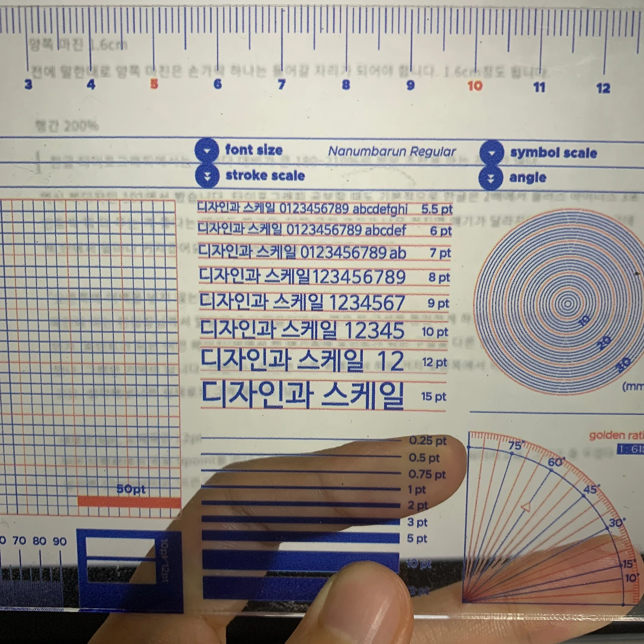 일반 단행본에서 주로 9point를 쓴다고 하는데, 제가 잘 보는 책들이 다 그정도 되더라고요. 그리고 좀 두껍다 싶으면 12point이고. 이건 다 뭐로 쟀냐면 텀블벅에서 구매한 자로 쟀습니다.