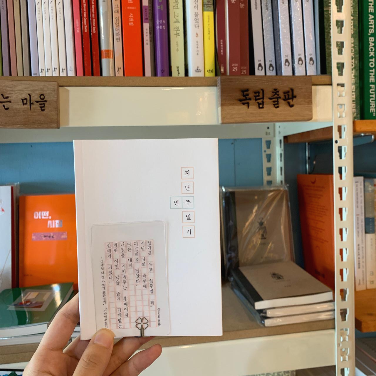 그리고 독립서점 입장에서는 굿즈를 책에 넣어주면, 샘플 관리하기가 어려워지는 단점이 있는 것 같아요. 굿즈를 증정한다면 고정할 수 있는 무언가를 꼭 같이 넣어주는 게 좋더라고요. 제가 지난민주일기를 만들 때 투명 책갈피를 만들어서 넣어놨는데, 어떤 서점에서는 벌써 분실이 되었는지 보이지 않았습니다. 아무래도 클립으로 고정해서 드리긴 했는데... 거기 제 책 하나만 있는 것도 아니고, 여러 권의 책들이 있으니 다 관리하시긴 어려우시겠죠. 뭔가 아쉽지만 그렇다고 말씀드리기엔 죄송하고. 뭐, 그러했습니다.