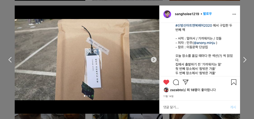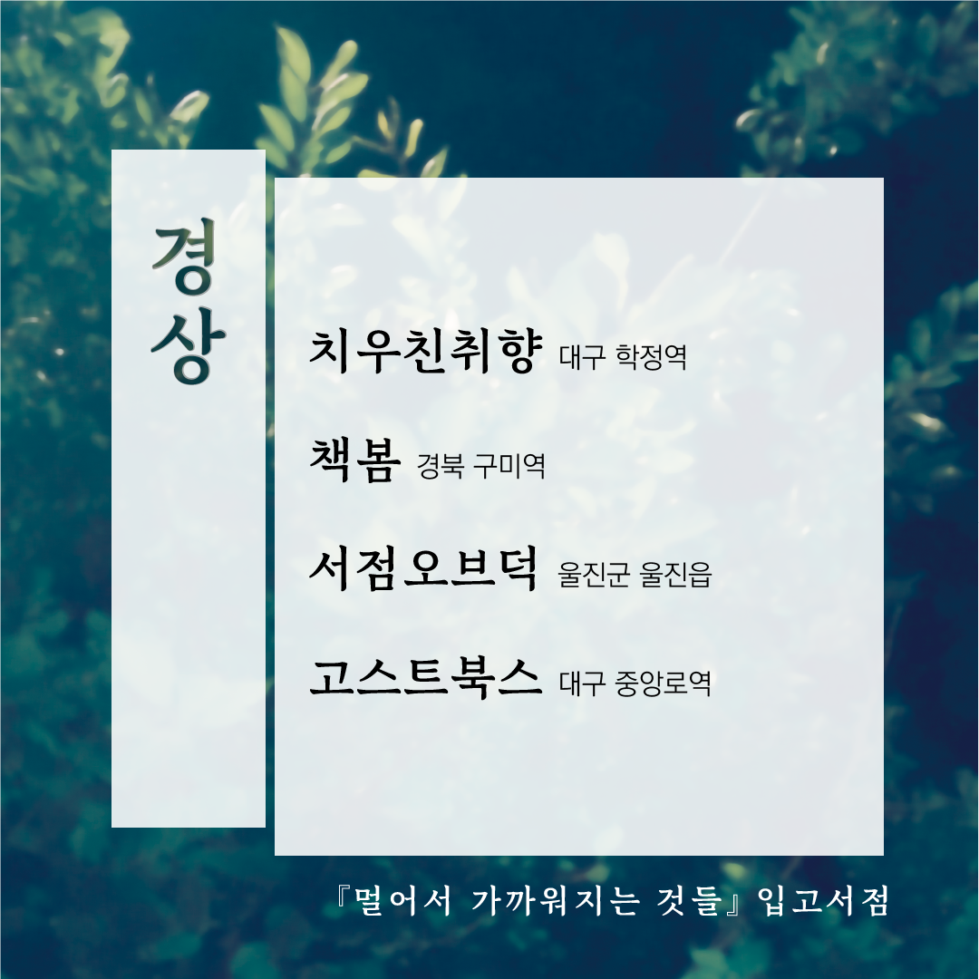 그 사이에 북페어를 나갔고, 입고서점을 늘렸고, 몇 곳은 재입고를 했으며, 코로나가 주춤했을 때는 강연도 다녔습니다. 좋은 일들이지요. 그런데 그 기록을 남기지 못했습니다. 일이 바빠졌기 때문인데요. 연말에는 시간이 남아 '브런치에 올렸던 <멀어서 가까워지는 것들 작업기>의 문을 확실히 닫고 싶다'는 제 소망을 이룰 수 있게 되었습니다. 오늘이 크리스마스니까, 제게 주는 크리스마스 선물 삼아 지난 시간을 느긋하게 찬찬히 돌아보려고 합니다.