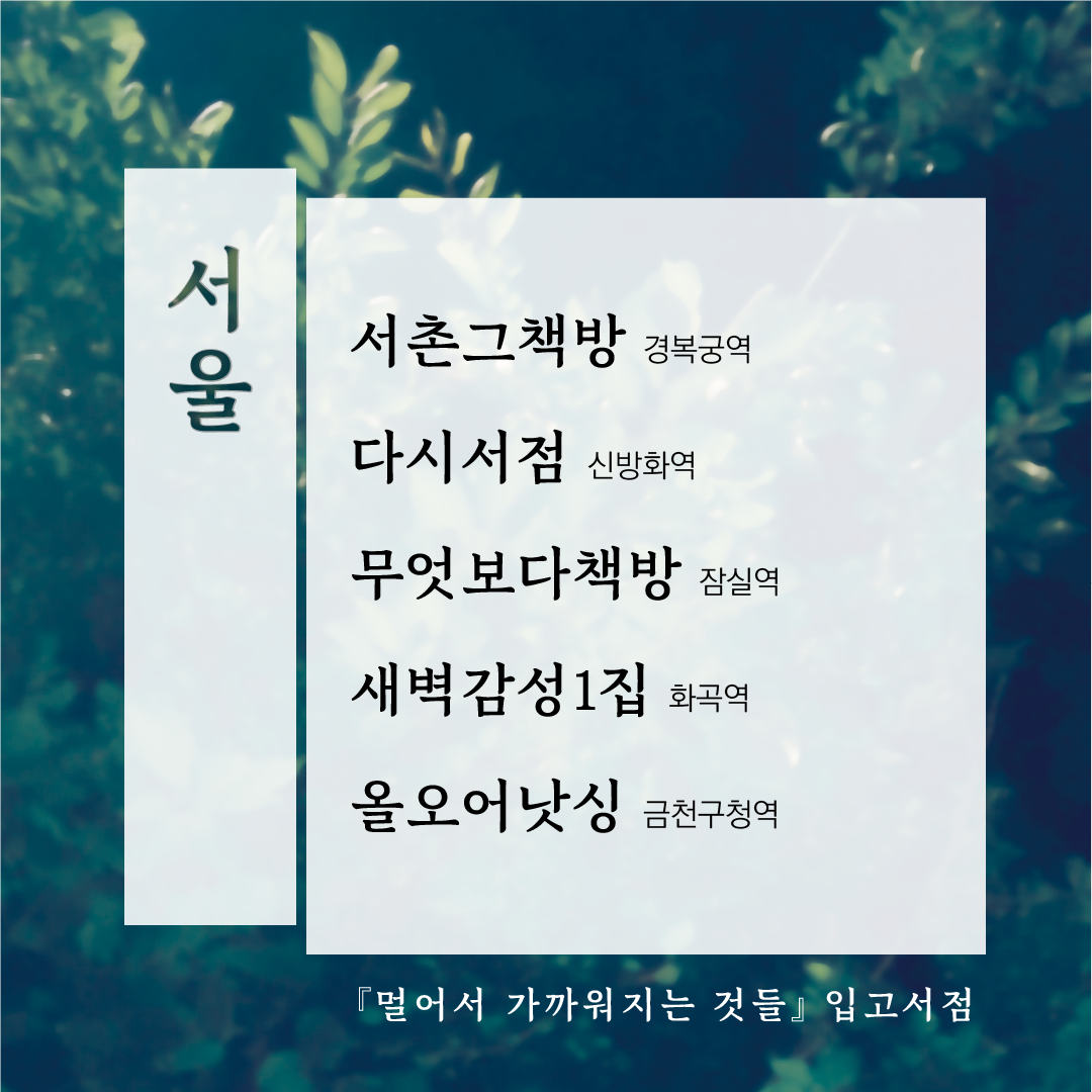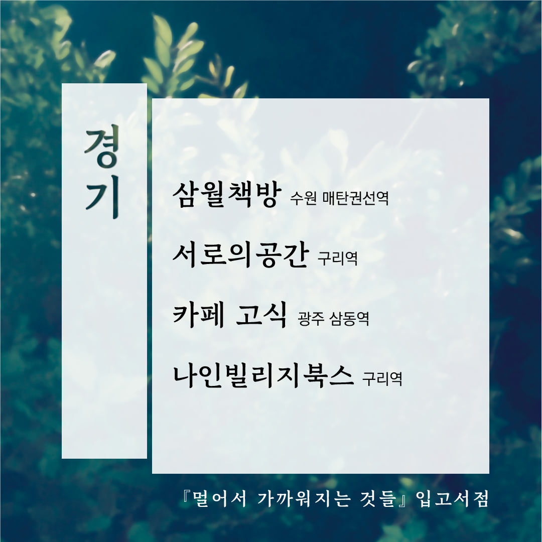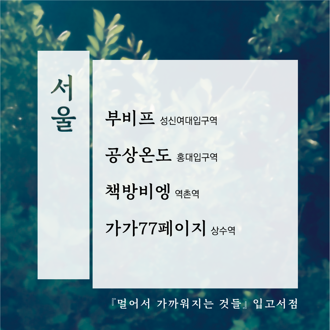 그래서 멀어서 가까워지는 것들 작업기의 문을 닫아봅니다. 작업기를 닫는다고 해서 작업이 끝나는 건 아니고, 여전히 입고도 하고 SNS도 하고 북페어도 갈 겁니다. 그러나 브런치에는 다음 책에 대한 생각이든, 제 다른 작품이든, 제가 일하면서 얻은 인사이트나 편집자로서의 생각들을 올리는 게 맞는 것 같습니다.