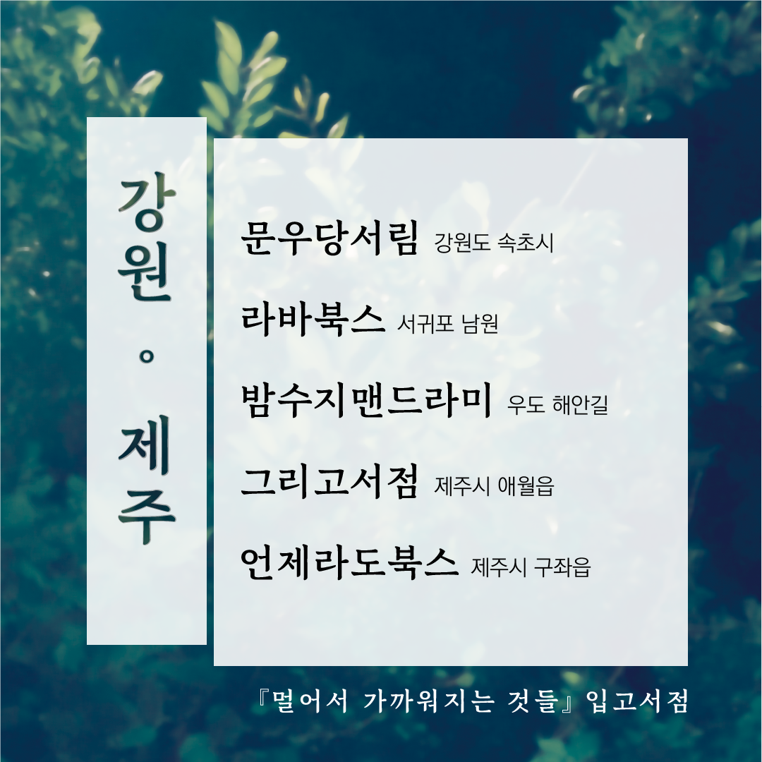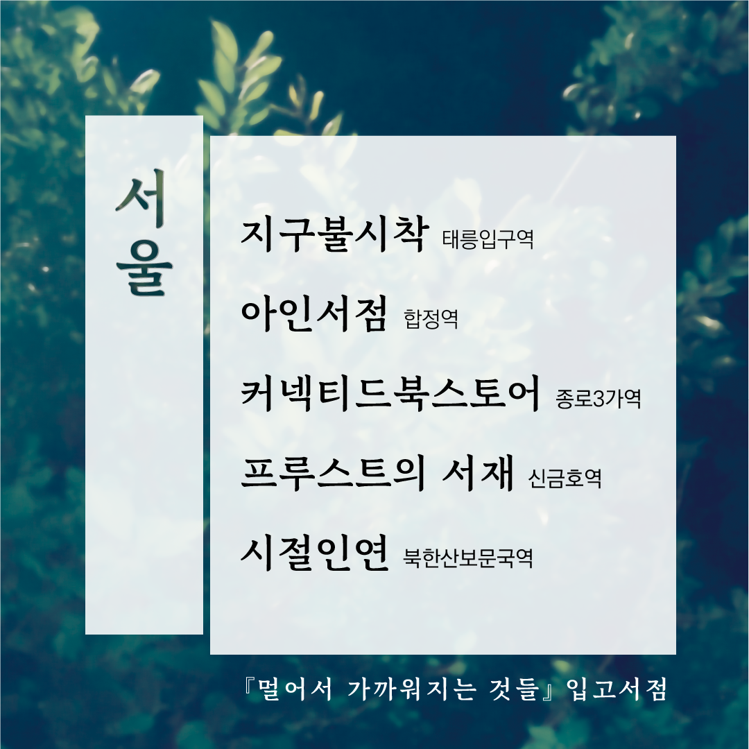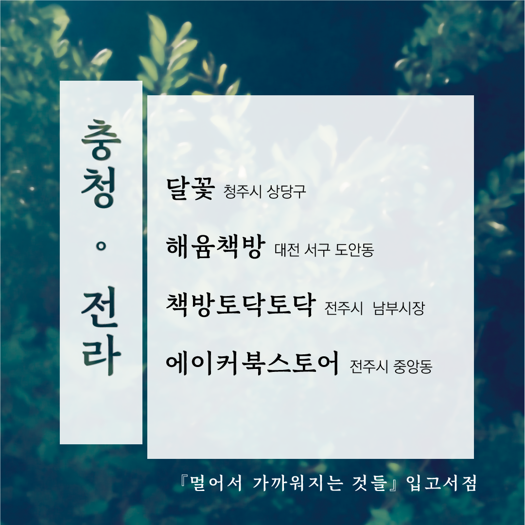 그래서 멀어서 가까워지는 것들 작업기의 문을 닫아봅니다. 작업기를 닫는다고 해서 작업이 끝나는 건 아니고, 여전히 입고도 하고 SNS도 하고 북페어도 갈 겁니다. 그러나 브런치에는 다음 책에 대한 생각이든, 제 다른 작품이든, 제가 일하면서 얻은 인사이트나 편집자로서의 생각들을 올리는 게 맞는 것 같습니다.