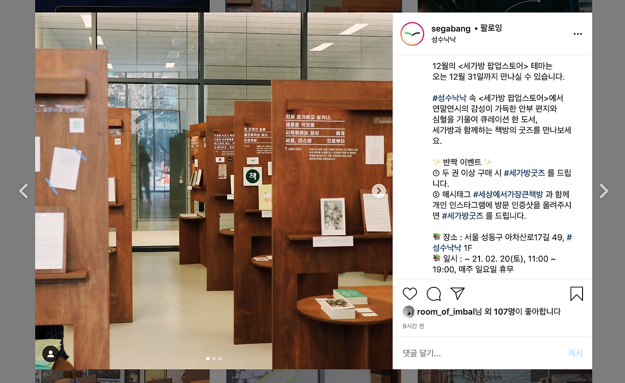 그리고 세가방 성수동 팝업 스토어에도 1월달 테마북 중 하나로 선정 되었다는데요.