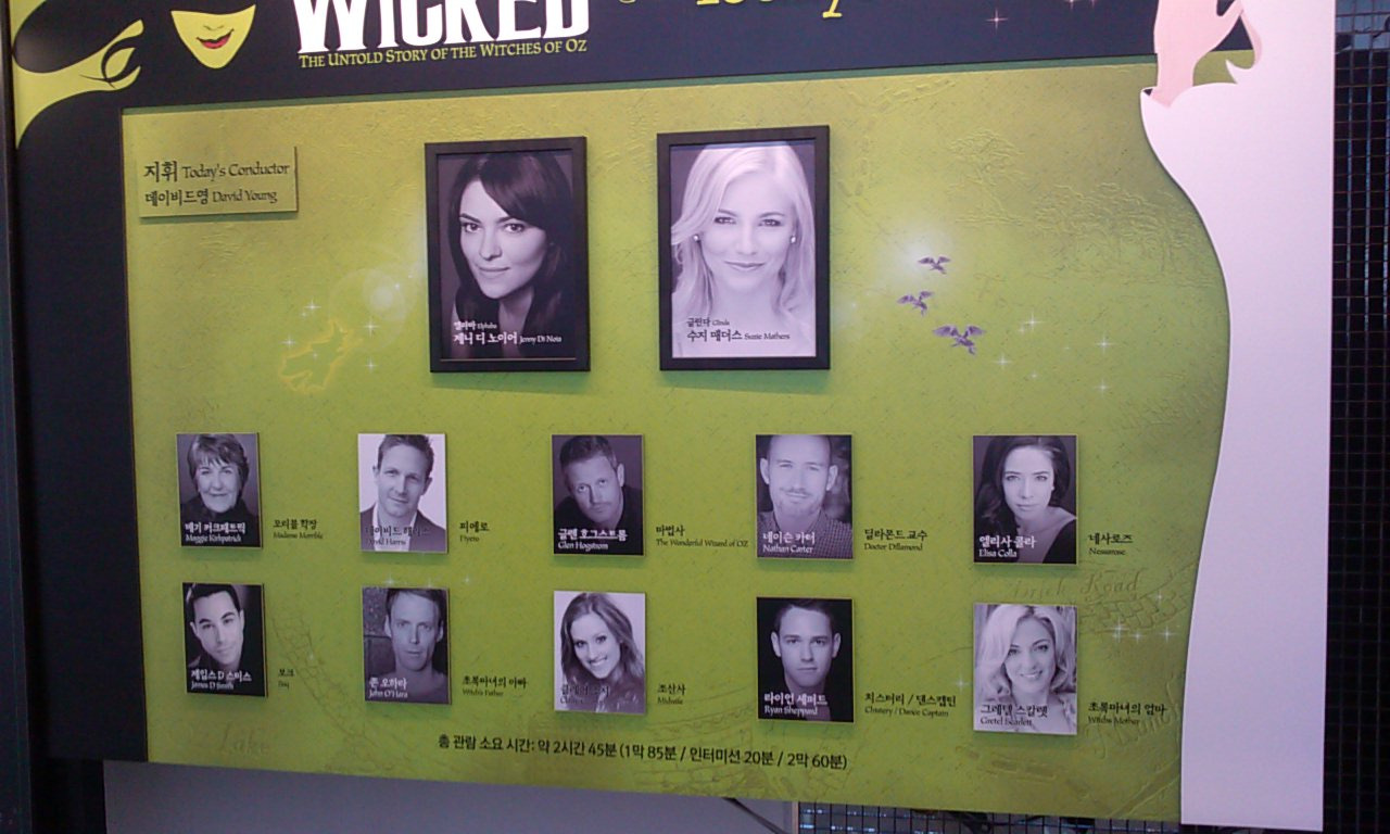 2012년, 내한공연 당시 관람 가서 찍어온 캐스팅보드. 캐스팅보드는 잘 안 찍어두는 편인데, 내한공연은 찍어뒀다.