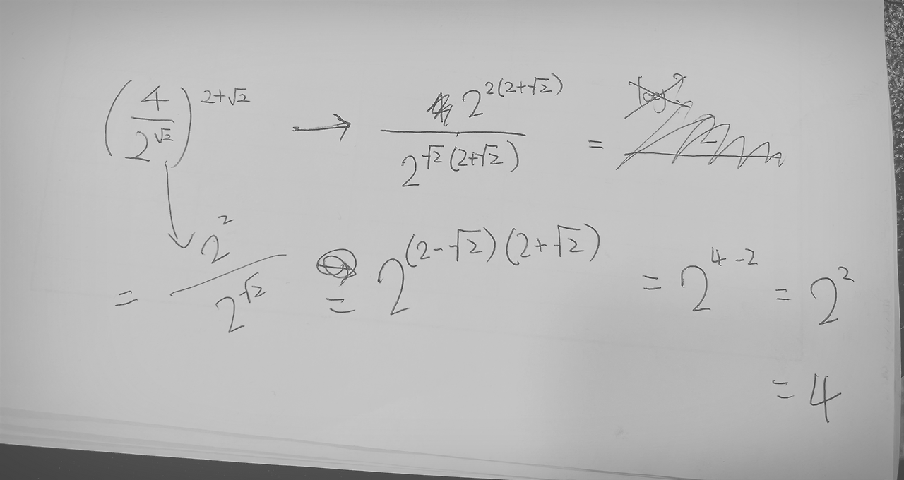 동료는 지수를 각 수에 곱해 소거하는 방법, 나는 지수 법칙과 (a-b)(a+b) 공식을 활용해 풀었다.