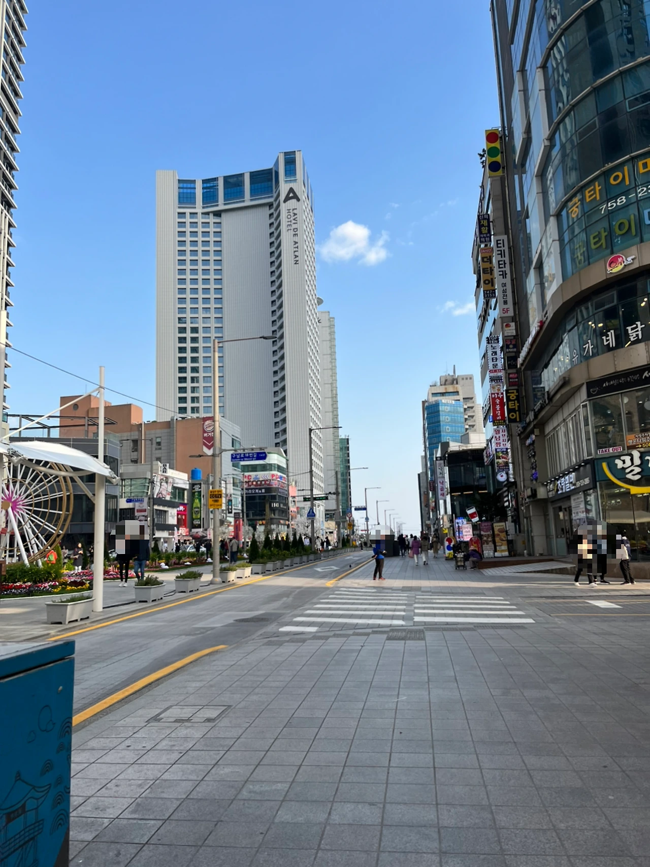 역에서 내리자마자 해변으로 시원하게 뚫린 대로를 지나갔다.