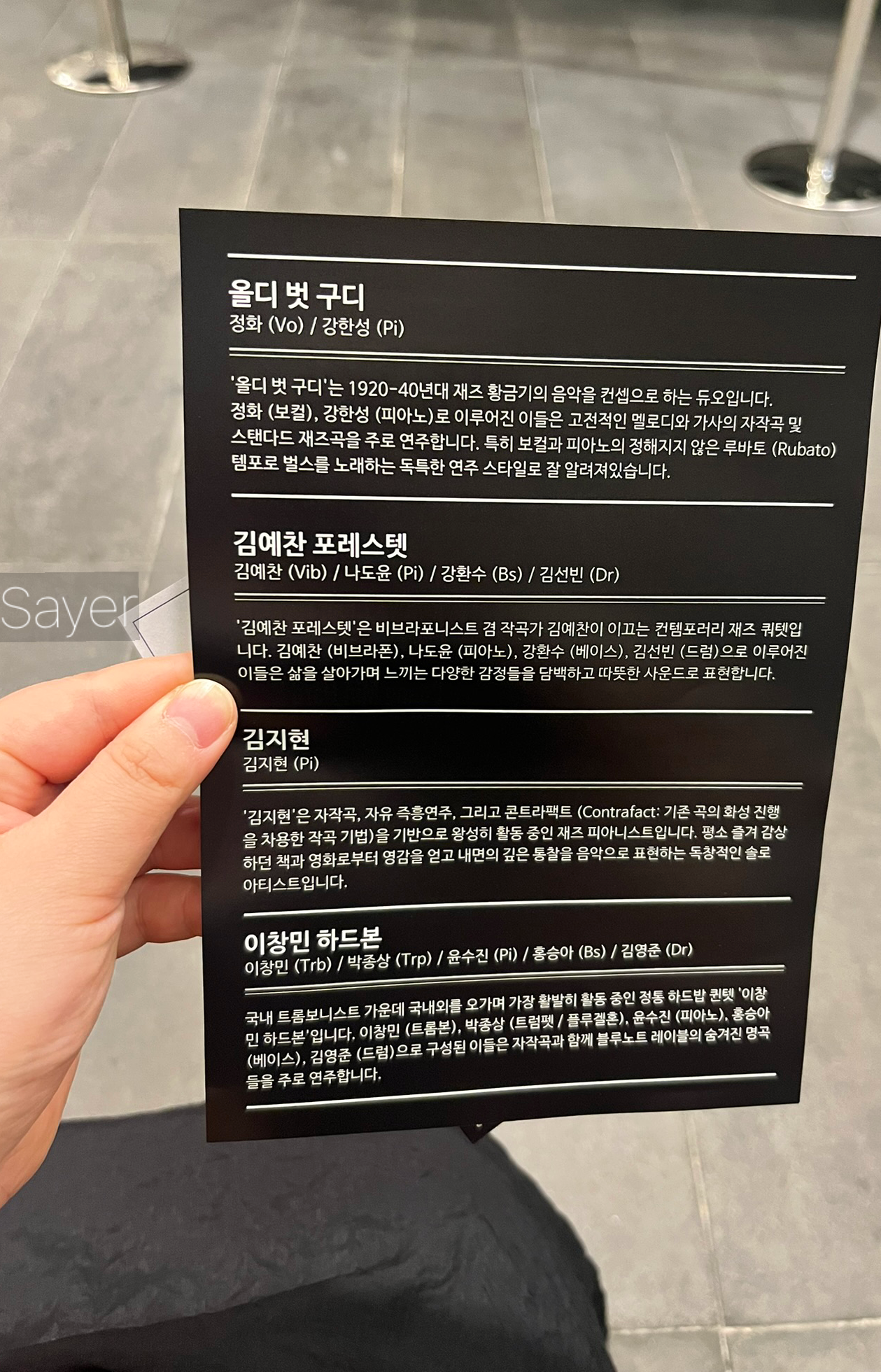 지난 2024년에는 혜화에서 하는 합동 재즈 콘서트에서 친구의 라이브를 처음 들었는데 가슴이 몽글몽글했다.
