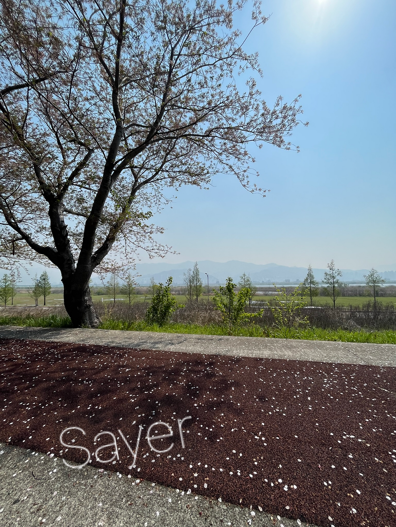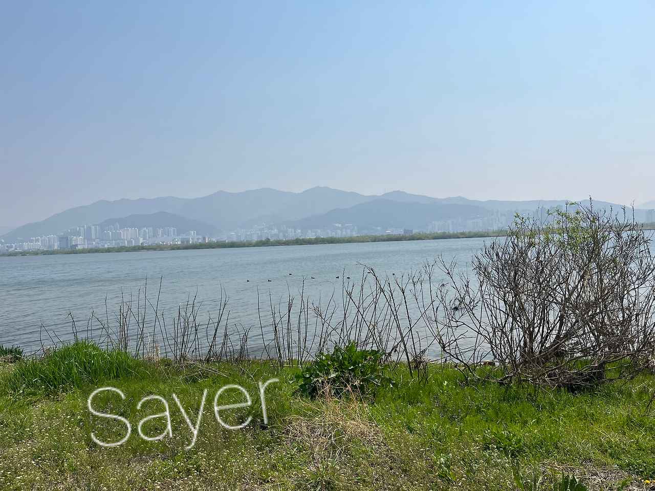 꽃밭 사잇길은 포장도로가 아니라서 체력적으로 힘들지만, 강물 흐름과 동동 떠가는 오리들을 구경하는 재미가 있어 힘을 쓸만한 가치가 있다.