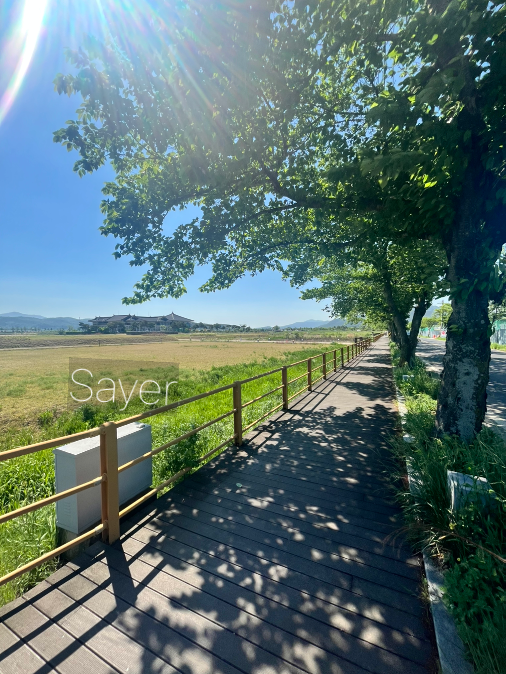이 부근의 여러 장소 중에서 내가 고른 두 장소는 공통점이 있다. 우선, 모두 가로수 그늘이 촘촘해서 자전거로 달릴 때, 시원하다. 또한, 황리단길에 아주 붙어 있지 않아서 인파가 붐비지 않는다. 그래서 자전거로 달리기에 안성맞춤이다. 그리고 마지막으로, 쭉 뻗은 길이 아주 아름답다는 것이다.