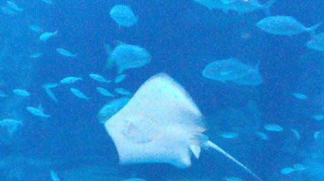마치 완전 생생한 대형 스크린같던, 가장 큰 대형수조. 그 안의 상어들과, 물고기들과, 가오리들.