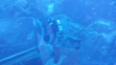 그리고 청소인지 점검인지 아니면 이용객을 위한 서비스차원에서인지 수중생물이 아님에도 수조 안에서 이용객들을 향해 안녕~ 안녕~ 저리가서 또 안녕~ 하던 다이버(아쿠아리스트).