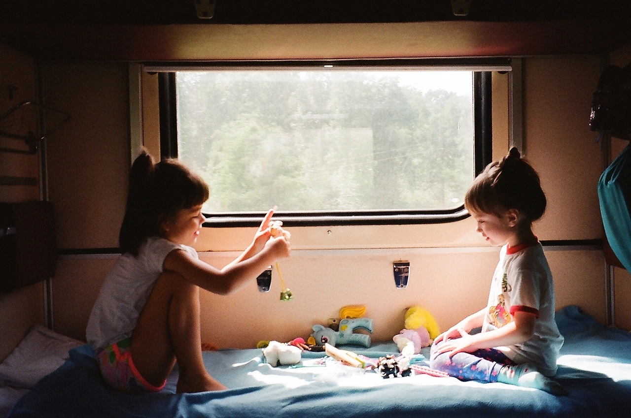 좁은 침대는 두 소녀의 놀이터로 충분했고