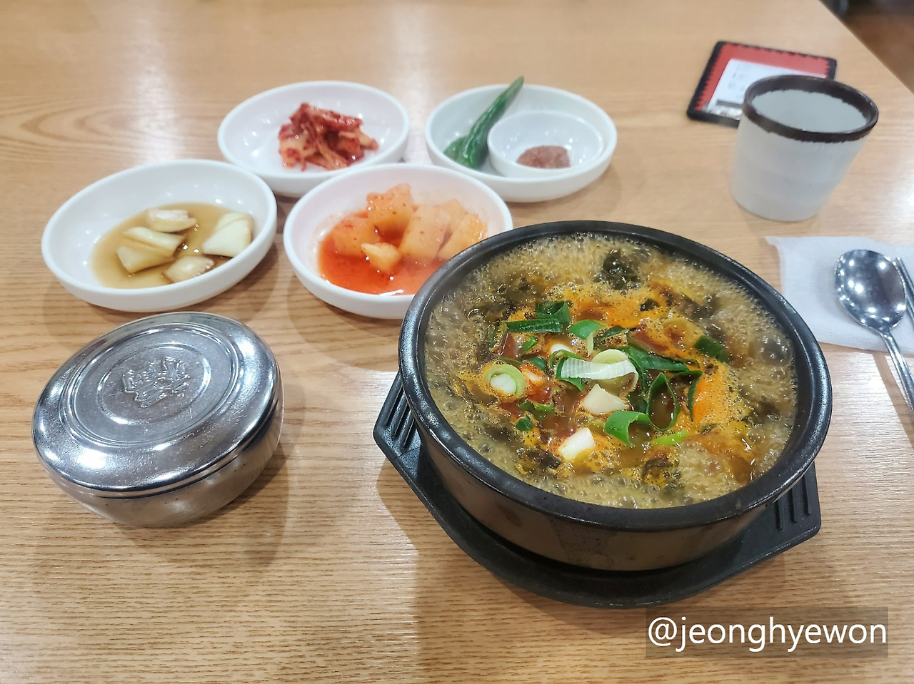 이후 버스를 타고 숙소로 이동하려는데 허기가 밀려왔다. 오전에 집에서 한 끼 먹은 이후로 먹은 것이 없어서 그런 듯 싶었다. 그래서 버스 안에서 숙소 근처 식당을 폭풍검색하다가 건진(?) 장터국밥집. 제주도의 유명한 맛집도 많겠지만 일단 뭐라도 먹어야 할 것 같다는 생각에 내리자마자 장터국밥집으로 향했다. 제주도에서 장터국밥 먹는 여행객도 있을까 싶어 조금 웃겼지만 역시 나다운 첫 끼라는 생각도 들었고 무엇보다 맛있어서 만족스러운 한 끼였다.