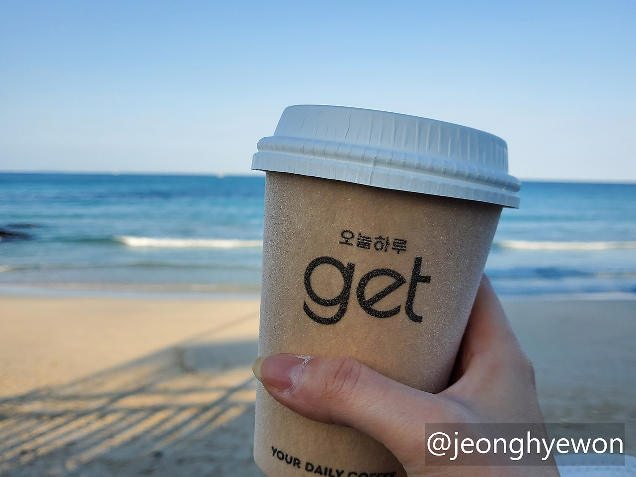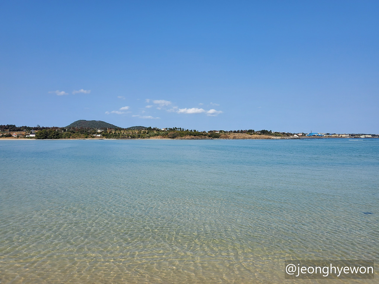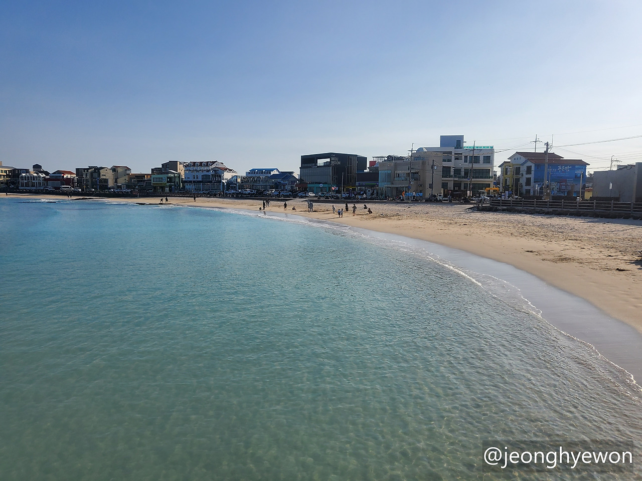그렇게 한창 물멍 때리고 있는데 옆에서 들려오는 한 아주머님이 다른 일행 분께 건네던 말씀. '월정리도 보러 갈래? 월정리 바다는 여기랑 또 달라.' 그 말씀이 귀에 닿는 순간, '네, 아주머님. 저 갈래요.' 마음의 소리가 터져 나왔다. 그리고는 바로 월정리로 향했다.
