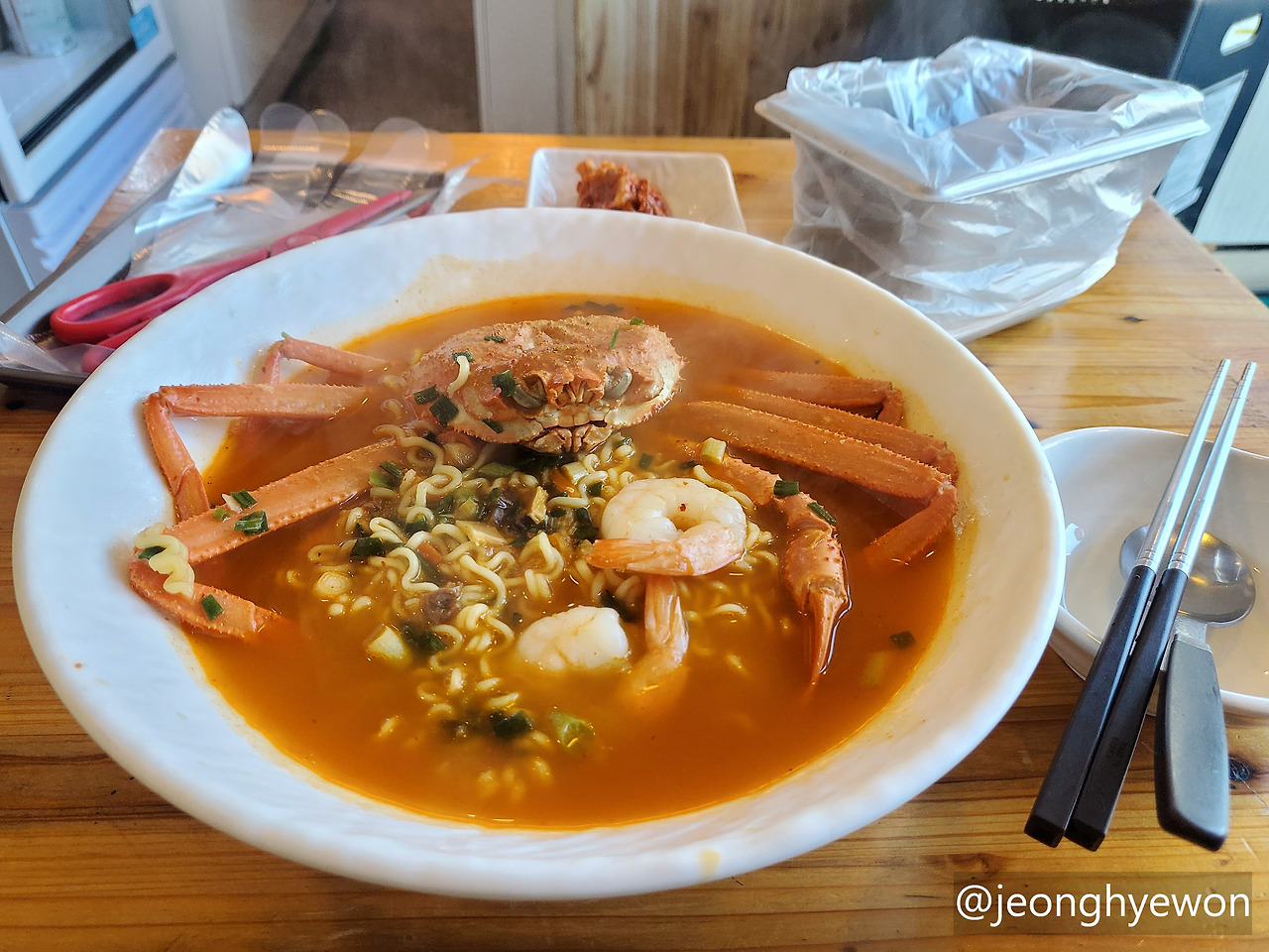 오후 3시가 넘어서 마주한 대게라면. 사실 뭘 먹어도 맛있게 먹을 수 있을 것 같았던 게 함정.