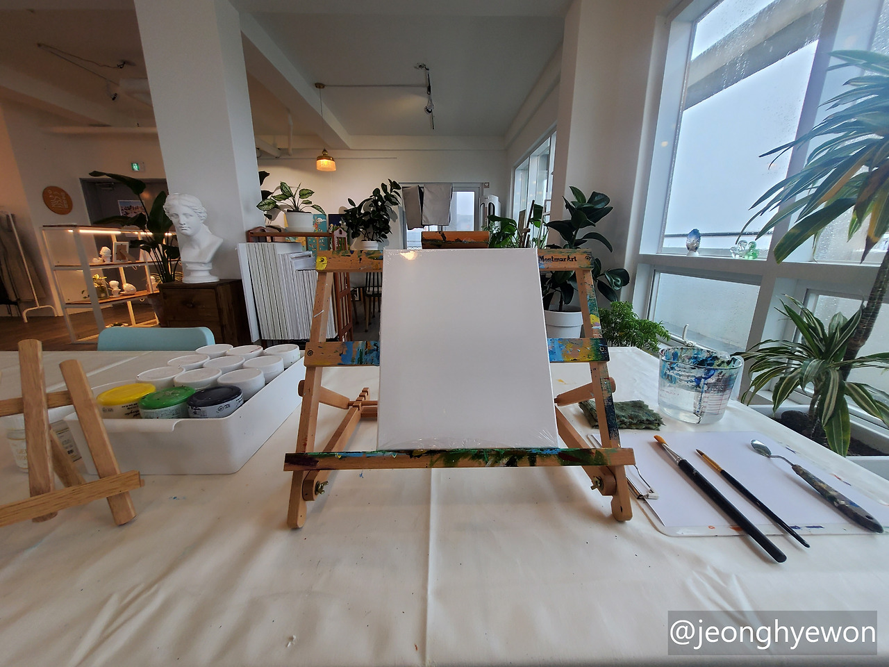 수업이 이루어지는 화실은 도보로 15분 정도 걸리는 곳이었다. 그런데 생각보다 길을 잘 찾은 덕분에 수업시작시간보다 무려 30분이나 일찍 도착해 있었다. 문이 잠겨있길래 그 앞에서 기다렸더니 식사를 마치고 올라오시던 강사님께서는 눈에 띄게 당황하셨다. 오히려 내가 죄송스러웠다. 제가 너무 빨리 온 것이니 수업은 정시에 시작해도 된다고 말씀드렸고 그 사이에 화실을 잠깐 둘러보았다.