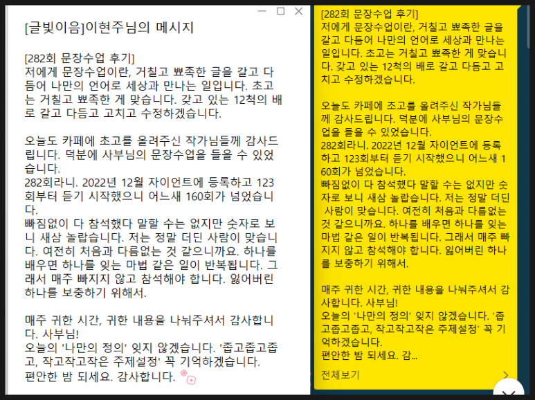[282회 문장 수업 후기]