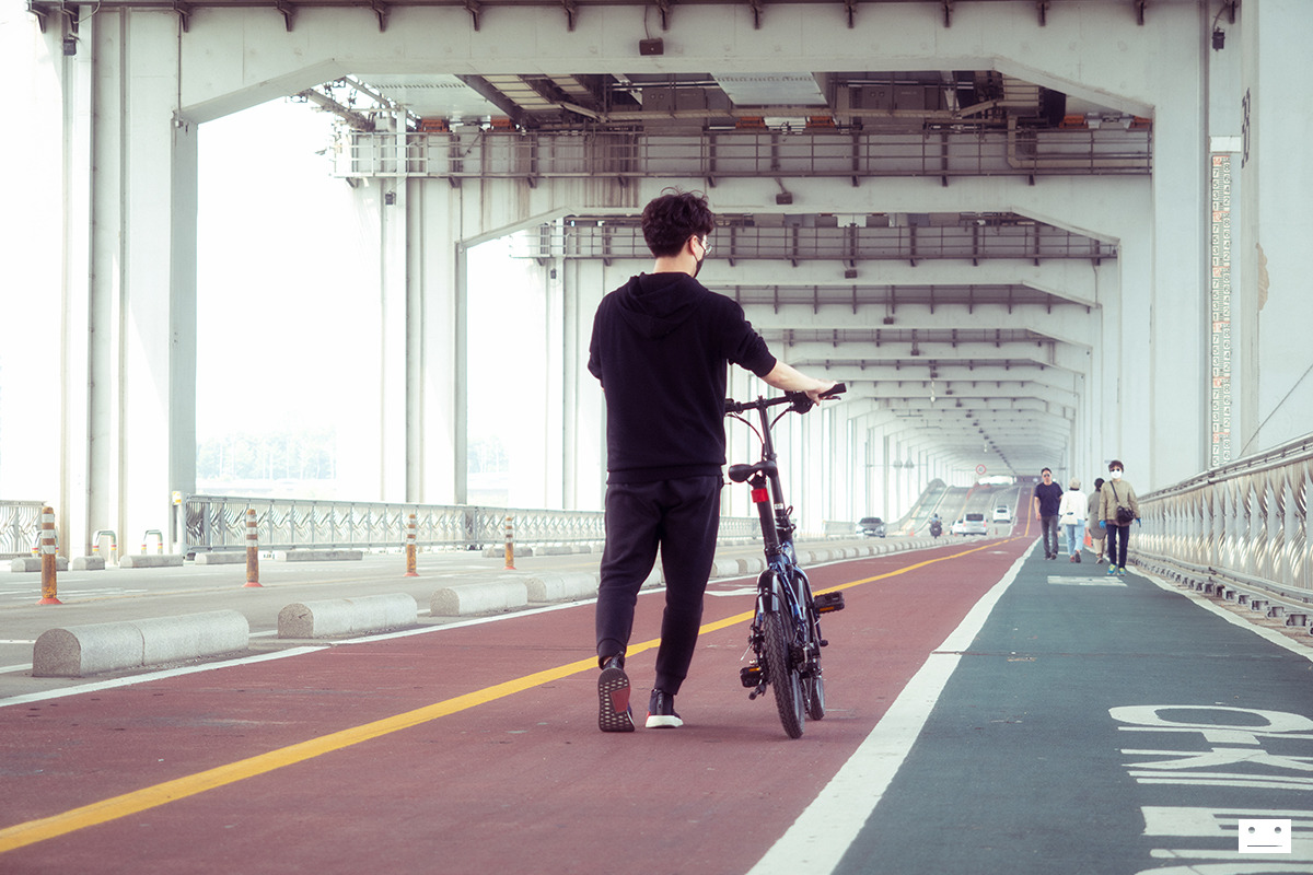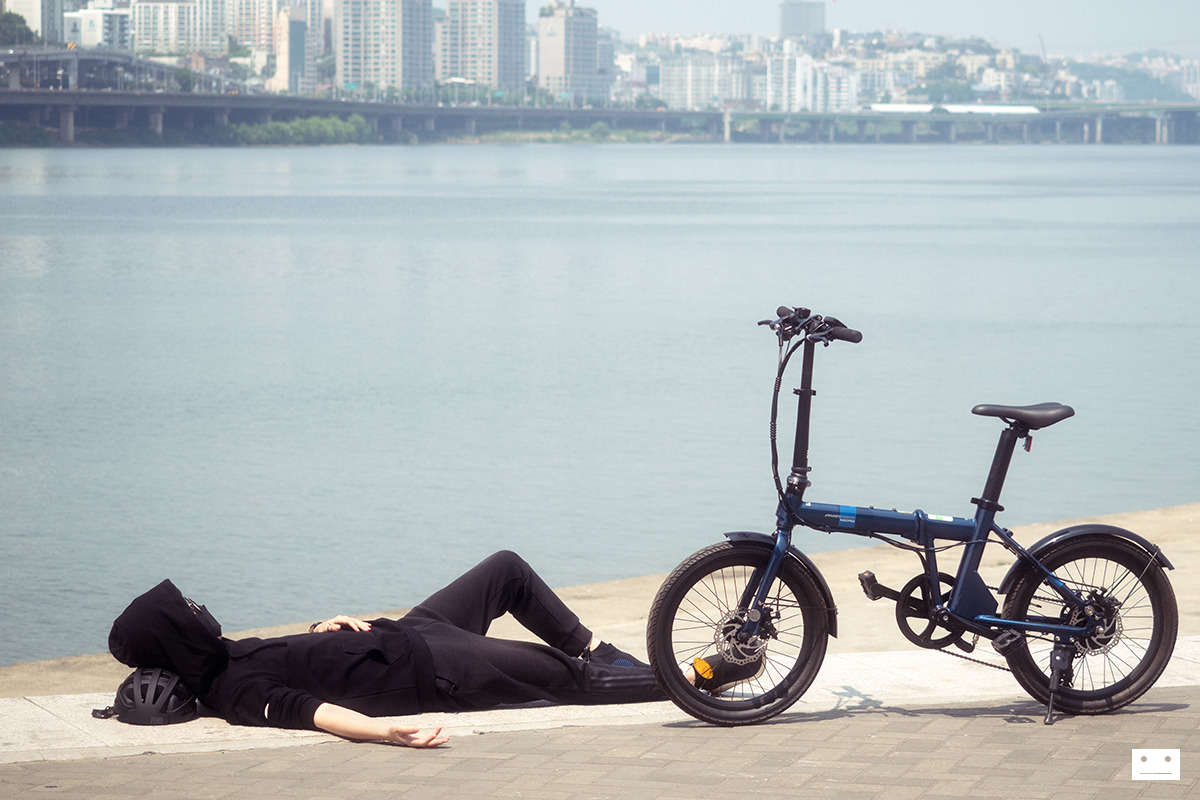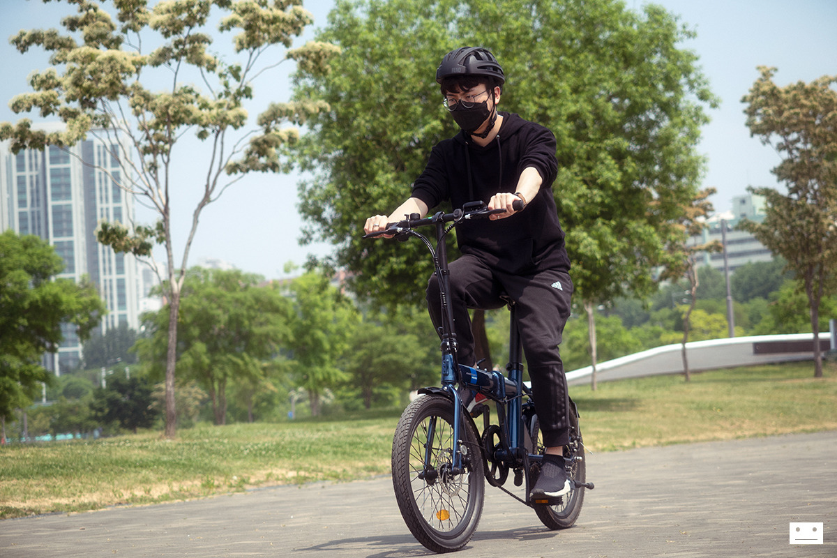 날이 제법 덥네요... 제가... 어디까지 얘기했죠? 아 그래요. 기능 이야기를 하고 있었죠. 편의 기능뿐만 아니라 실제 주행 기능도 상당히 뛰어납니다. 바퀴가 작으면 안정성이 좀 떨어진다는 생각이 들잖아요. 특히 접이식 자전거면 더욱요. 그런데 주행감이 상당히 좋습니다. 엉덩이는 조금 아팠어요. 안장을 다른 거로 바꿔주면 좀 더 좋을 것 같더라고요.