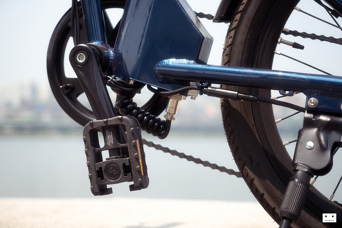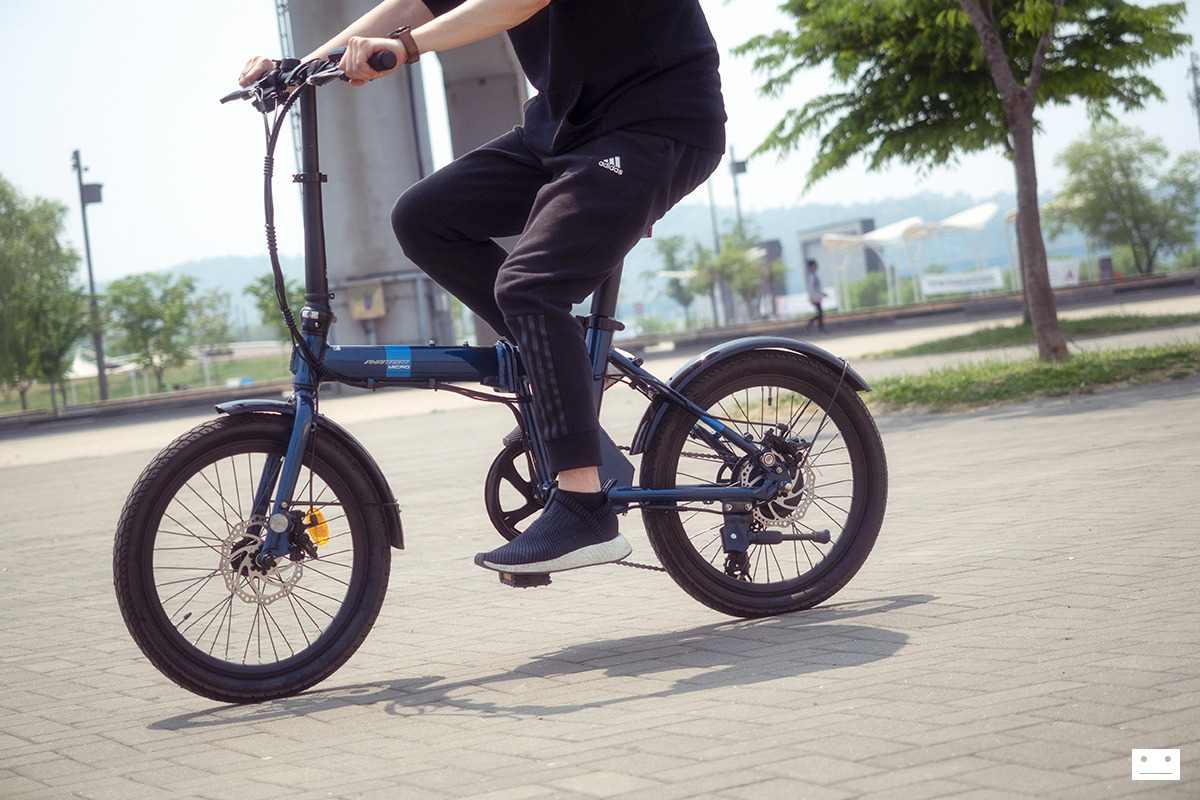 다만, 이런 류의 자전거를 같은 선상에 놓고 본다면 주행감은 나쁘지 않습니다. 파스 방식의 전기자전거는 이번이 처음이었는데요. 바퀴를 밟는 느낌에 맞춰 꽤 세심하게 속도를 조절하는 느낌이더라고요. 그래서 별 고민 없이 천천히 바퀴를 밟는 것만으로 안정적인 속도를 낼 수 있었습니다. 기본적으로 모터가 뒷바퀴를 굴려주는 후륜 구동이라 주행도 안정적이었고요. 속도가 부족해 자전거가 비틀거리는 일도 거의 느끼지 못했습니다.