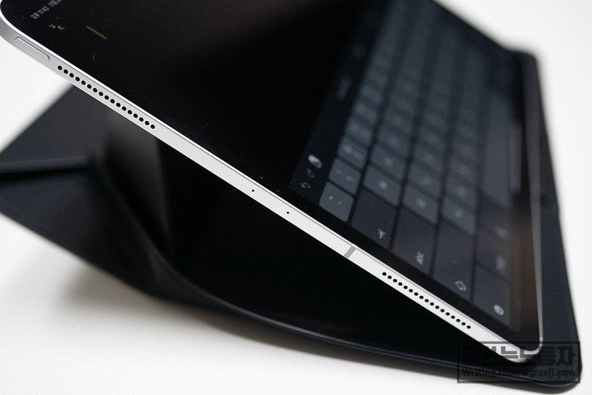 다른 태블릿도 마찬가지지만, 특히나 12.9인치라는 거대한 크기를 자랑하는 아이패드 프로 4세대는 어딘가 거치해야 할 방법을 찾아야 한다. 다른 태블릿은 어느 정도 휴대성을 갖추고 있기에 손으로 드는 시나리오를 상정할 수 있으나, 아이패드 프로 12.9인치 모델은 손으로 들고 쓰기엔 그 크기도, 무게도 상당해 쉽지 않다.