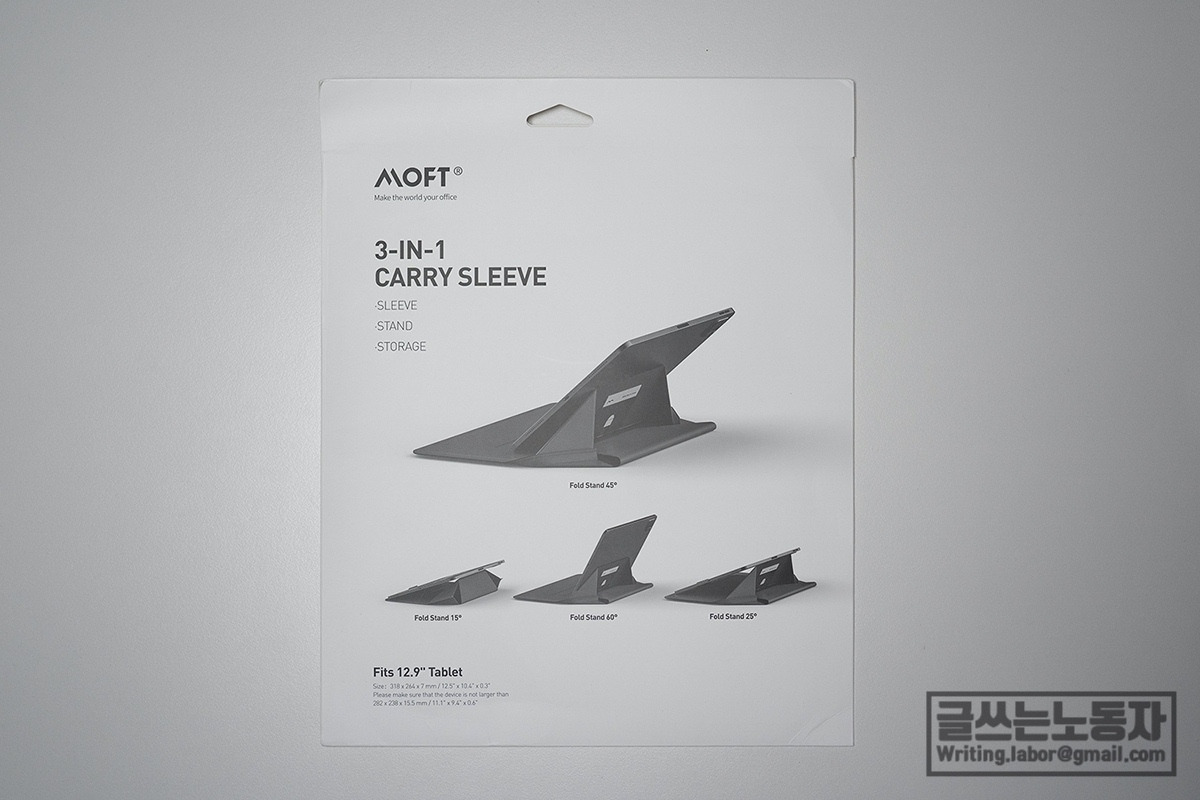 그 전에 한 가지. 모프트 아이패드 슬리브는 모프트 캐리 슬리브(MOFT Carry Sleeve)의 사이드 프로젝트였다. 노트북을 위한 슬리브로 13인치, 13.3인치, 15인치 제품을 내놓았으며, 여기에 아이패드를 위한 11인치, 12.9인치 제품이 새롭게 등장한 것.