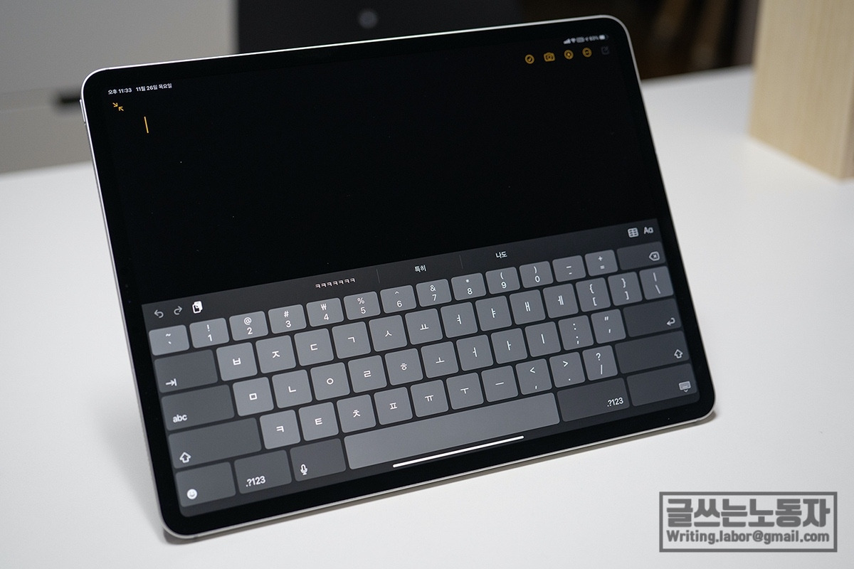 아이패드 11인치는 세로로 쓰는 일도 제법 많지만, 아이패드 12.9인치는 세로로 써야 할 일이 많지 않다. 그런데 막상 실제 작업을 하다 보면 가로로 쓰는 일을 고려한 건가? 하는 생각이 들 때가 있다.