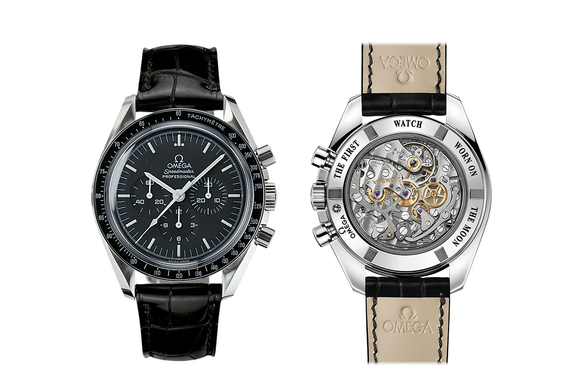 오메가 스피드마스터 문워치 프로페셔널 크로노그래프는 유서 깊은 수동 와인딩 무브먼트인 오메가 칼리버 1863 무브먼트를 탑재했다. 충격과 긁힘에 강한 사파이어 크리스탈, 30분 혹은 12시간 카운터, 중앙 크로노그래프 핸드가 특징이다. 크로노그래프 또한 고급 시계의 기술력을 꼽는 요소 중 하나. 기본 나토(NATO) 스트랩이 아닌 우주 비행사용 스트랩으로 교체하면 좀 더 실용적인 느낌이 더해진다. 기념비적인 모델답게 전용 문워치 기프트 박스도 있다. 착용이 아닌, 수집의 용도로도 매력적이다. 그리고 최초의 문워치로서 그럴 만한 자격이 있다.