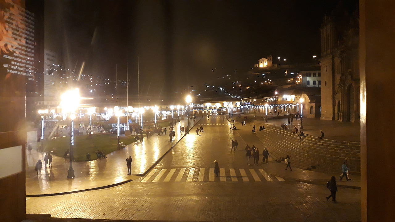 그리고 30분쯤 지났을 까. 삭사이와만에서 만난 친구들에게서 연락이 오지 않아서 '그럼 그렇지, 어떻게 처음 보는 사람에게, 아무리 한국인을 좋아한다고한들, 그런 이유로 뭔가를 사주려고 하나...' 싶었는데 한 편으로는 괜한 안도감이 들기도 했더랬다. 그럼에도 불구하고, 혹시나 하는 마음에 7시 50분 즈음 광장으로 나가 앉아 있었다. 쿠스코의 밤 공기는 꽤나 쌀쌀했다. 대성당 앞 계단에 앉아 광장 안을 바라보고 있은지 한 10분 즈음 지났을까. 벌벌 떨며 앉아있던 나를 향해 누군가가 내 이름을 불렀다. 그 친구들 중 한명인 아니타(Anita)였다.