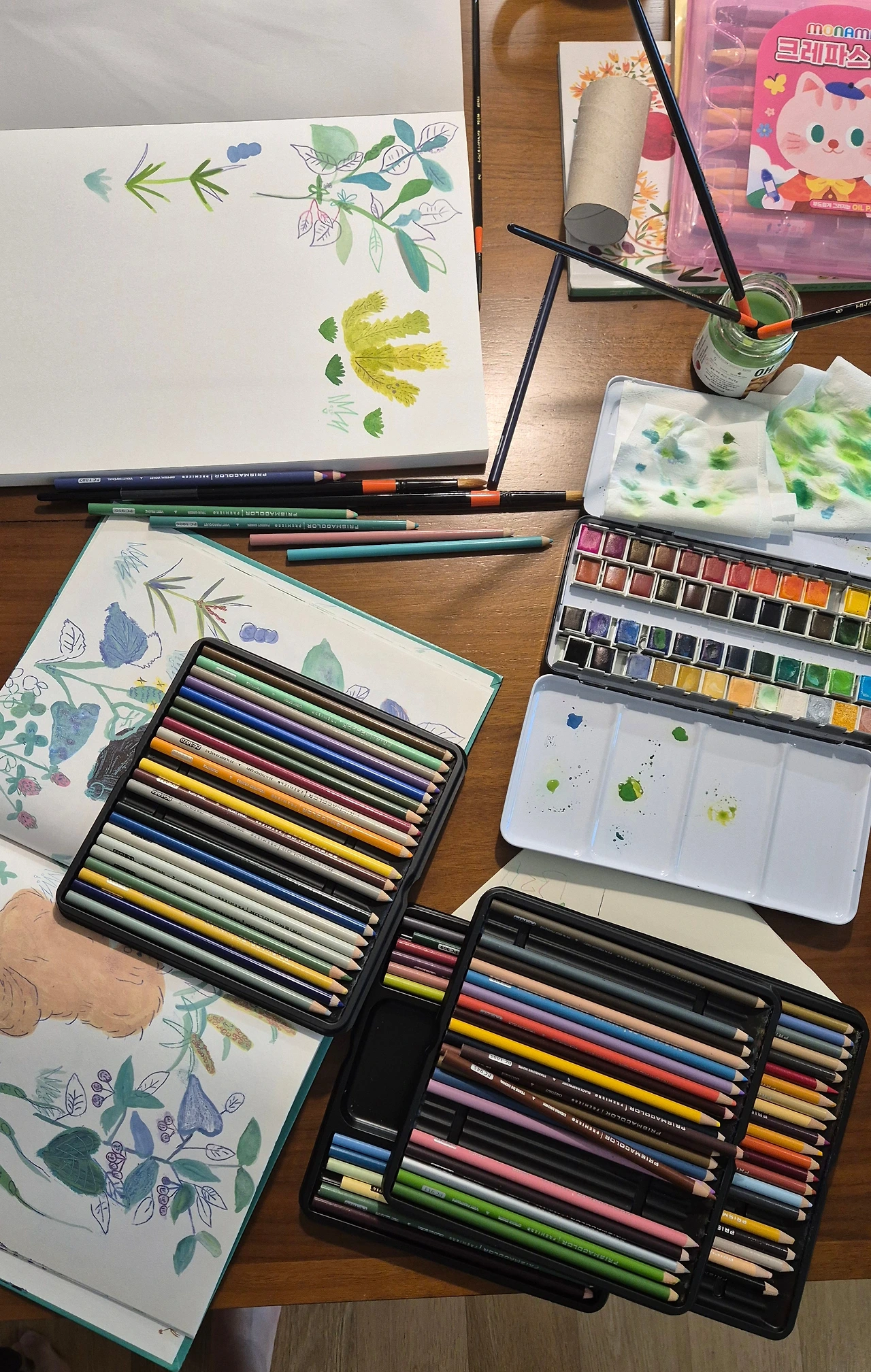 그 마음을 알아차리자 죽이 되든 밥이 되든 내 걸 만들어보자는 결심이 섰고, 처음 시작한 것이 그림책이었다. 우연히 내일 배움 카드로 '나만의 그림책 만들기' 수업을 듣게 되었고 이 수업이 마중물이 되어 한겨레 그림책 수강으로 이어졌다. 내 유일한 스킬인 글쓰기에 그림을 더한다면 경쟁력 있는 크리에이터가 될 수 있을 것이란 생각으로 시작했지만 만만치 않은 작업이었다. 텍스트 중심의 서사가 익숙했던 나는 이미지 기반의 콘텐츠를 만드려니 감이 안 잡혀 버겁게 느껴졌다. 초보이니 버거운 것은 당연했지만 계속 좋아하면서 노력하고 싶은 마음이 생기지 않는다는 것이 문제였다. 완벽주의자의 핑계라며 투고를 위해 노력해 보았지만 그림은 그려지지 않았고 투고일이 가까워져서야 그 마음을 알아차리고 인정했다. 그랬더니 그림책을 내야 한다는 압박 속에 그림을 그려선 안 되겠단 생각이 들었다. 어떤 방식으로든 그림 그리는 능력을 써먹을 수 있으니 크리에이터로서 나의 첫 시작을 그림책으로는 할 수 없겠다는 결론이 섰다.