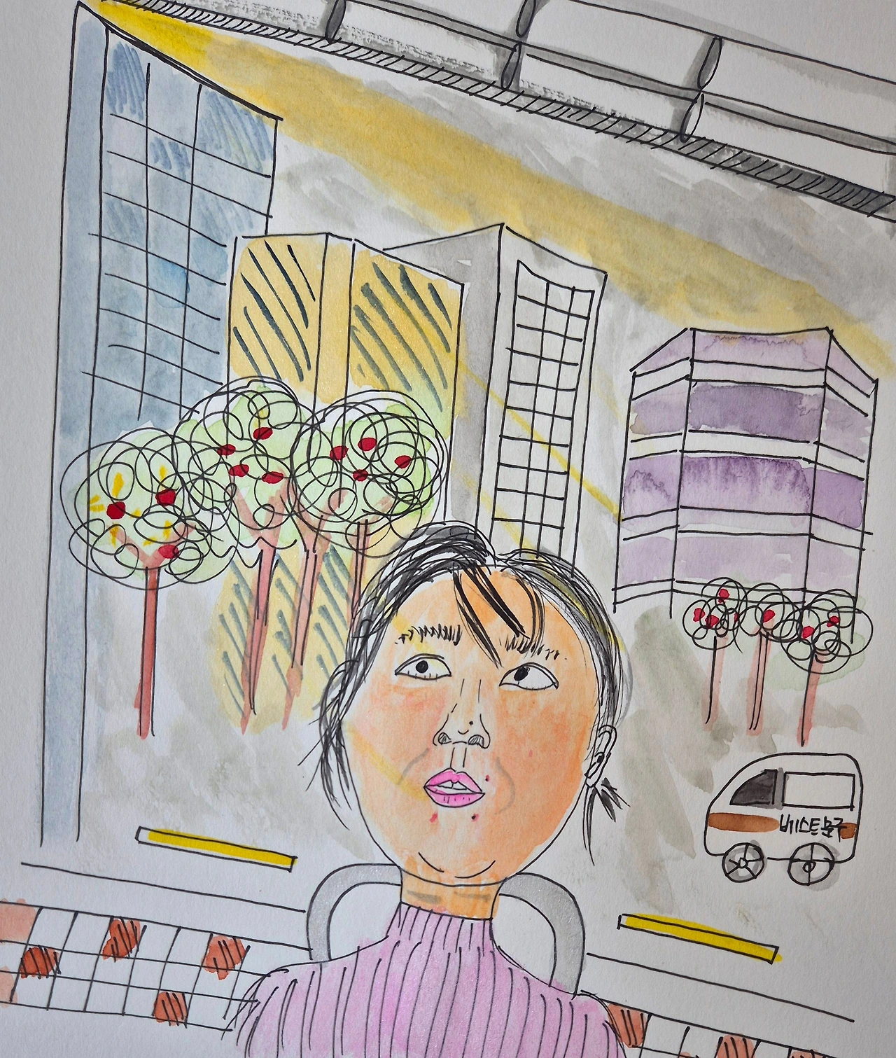 후텁지근한 어느 날, 파란 셔츠에 땀에 젖은 겨드랑이가 존재감을 드러낼까 양 팔뚝을 가슴팍에 붙였다. '긴장을 많이 하셨나봐요?'라고 의미심장하게 웃는 대표의 말에 '우는 겨드랑이를 들킨 걸까?' 싶어 민망스러운 표정을 짓기도 했다.