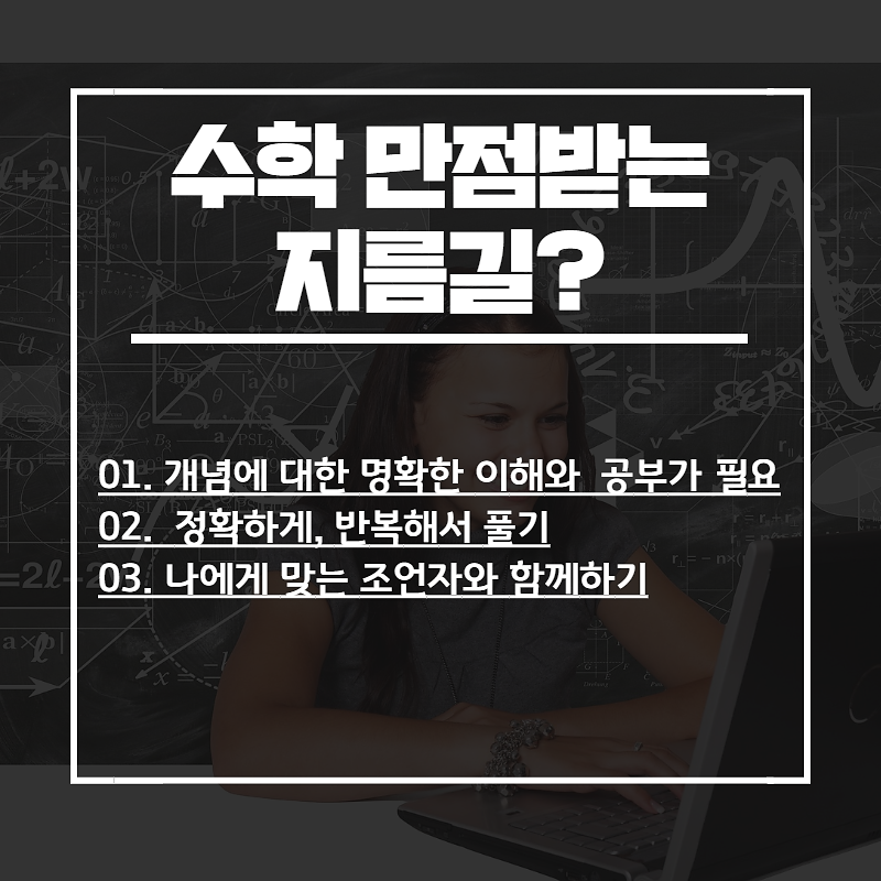 수학 만점을 받으려면 첫 번째, 수학 만점을 위해서는 개념에 대한 명확한 이해와 공부가 필요하다.