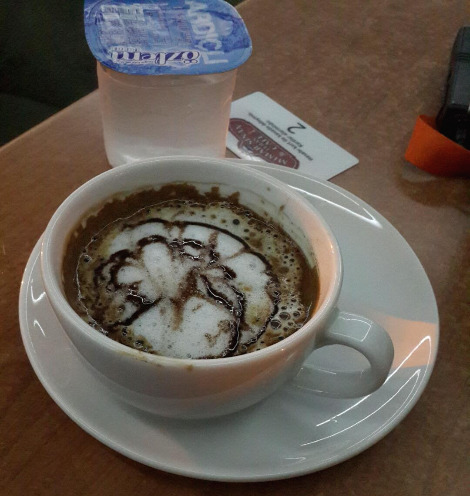 에스프레소처럼 샷으로 마시는 터키 커피를 라테 잔에 한가득 담아서는 라테 아트까지.