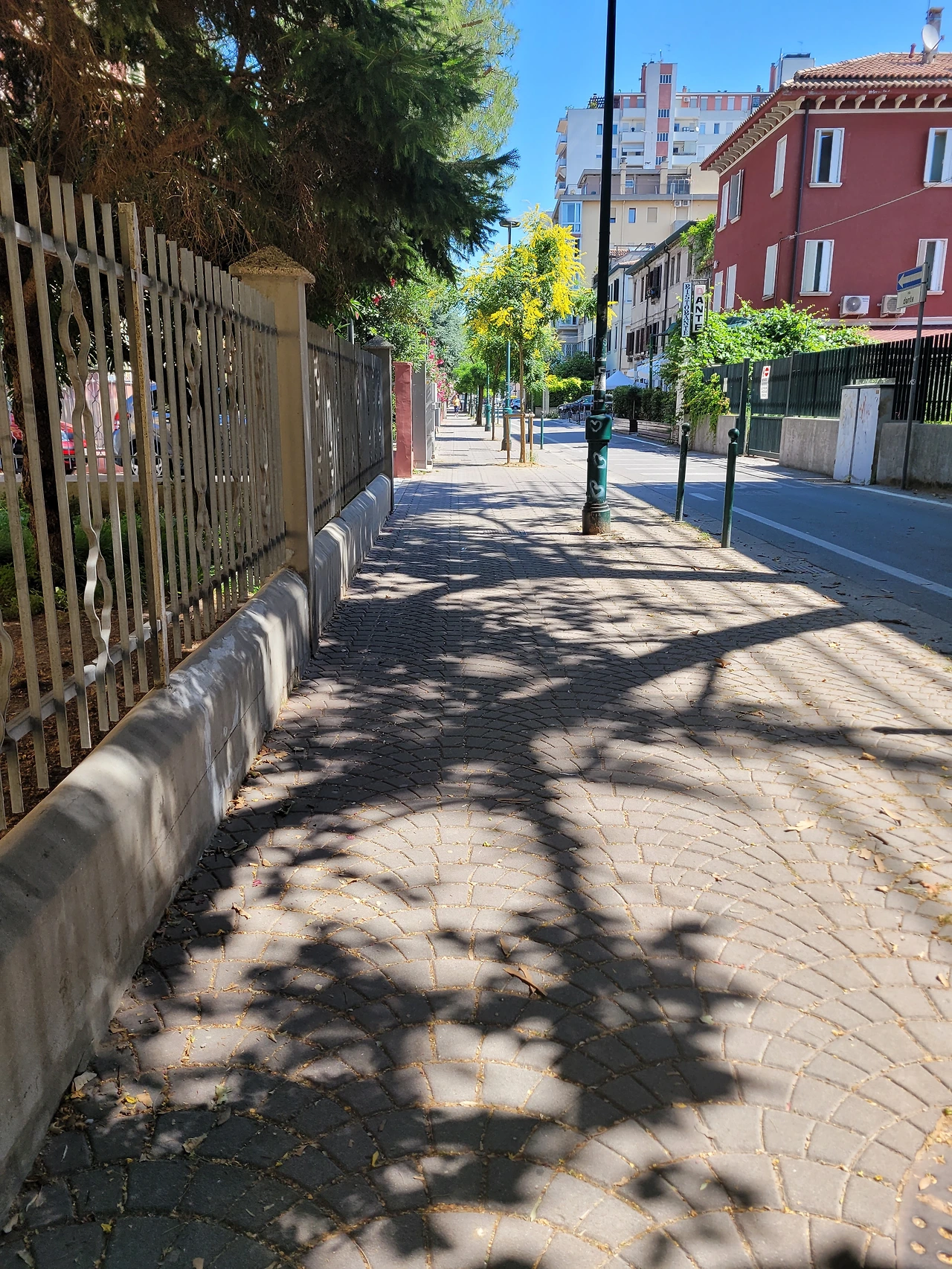 아무도 없는 길을 혼자 걸었다. 이따금 나무가 만들어준 그림자가 길 위에 있으면 징검다리를 건너듯 폴짝폴짝 그늘에서 또 다른 그늘로 몸을 피했다. 그늘이 사라지면 별 수 없이 땡볕을 고스란히 맞으며 걷다 보니 메스트레의 구시가지가 보였다.