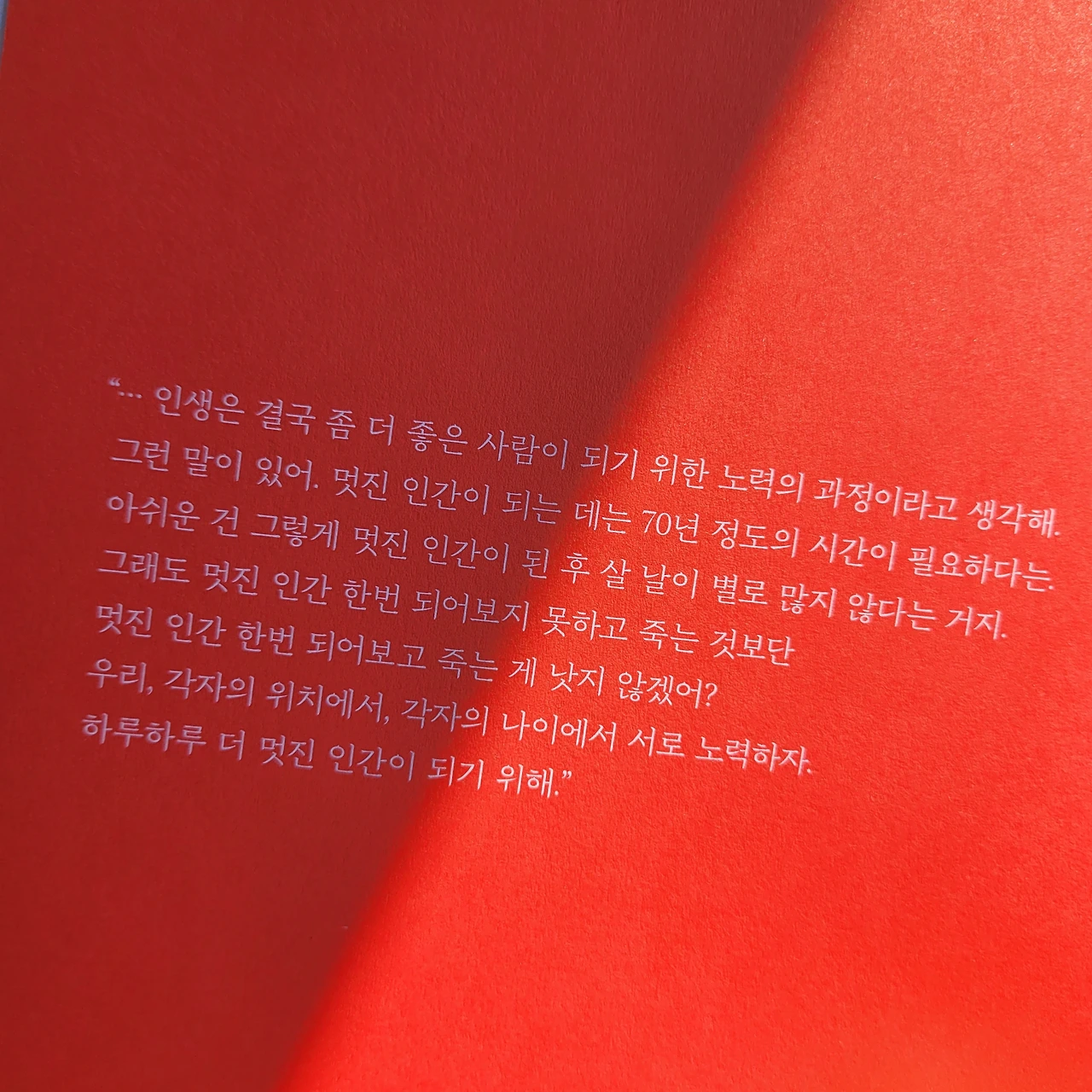 십 대 끝자락의 그 사랑고백은 제게 사랑이라는 감정보다 더 많은 것들을 안겨주었습니다. 덕분에 저는 더없이 나다운 이십 대를 살 수 있었고요. 오롯이 내가 한 선택이 만들어낸 결과이니 어떤 결과이든 받아들일만했어요. 그렇게 내 색깔로 꽉 채운 이십 대를 보내고 나니 위태했던 십 대 시절과 달리 나 자신을 온전하게 사랑할 줄 아는 삼십 대가 된 것 같습니다.