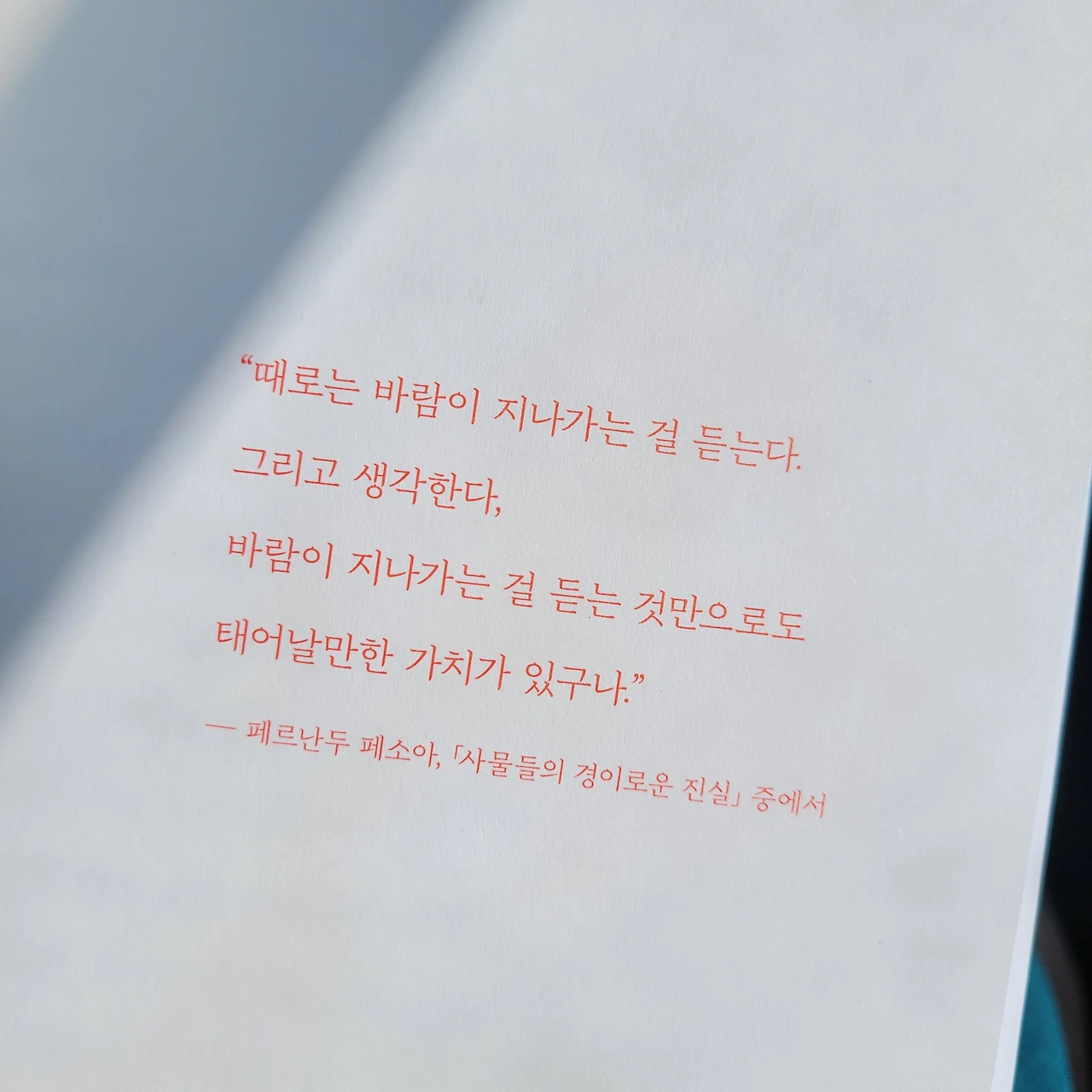 세상에 잣대로 변변치 않아 보일 때조차 온전히 내 모습으로 행복할 수 있게 해 준, 제가 등 뒤에 꼭 기대고 서있는 세 개의 문장이 있습니다. 그중 이 문장은 제 인생이 오롯이 제 것이었던 시절부터 가장 오래 저를 지켜주고 길잡이가 되어준 존재였어요.