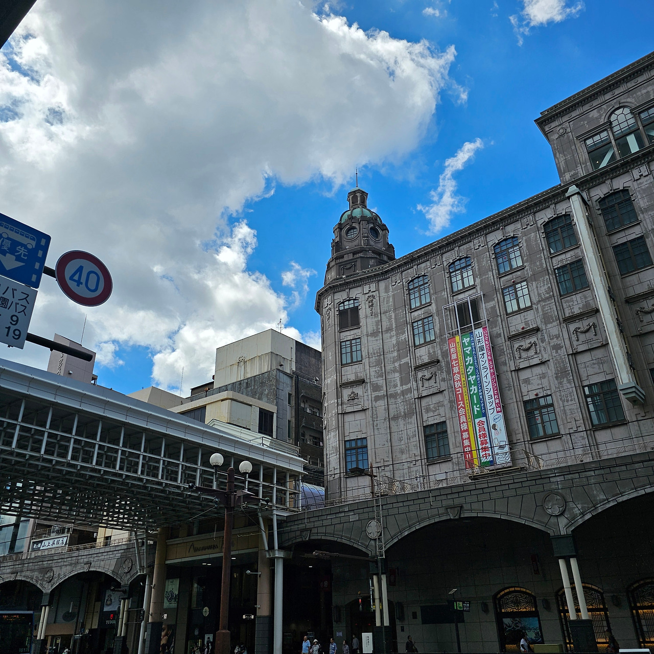 오는 길에 점심시간이 되어가길래 시티뷰버스 정류장 중 하나인 '긴세초(金生町)'에 내려 1910년대에 지어졌다는 '아마가타야백화점'에 갔습니다. 7층에 큰 푸드코트형 레스토랑이 있고 다양한 식사 메뉴를 팔면서 가격도 저렴하길래 점심을 해결하러 갔습니다.