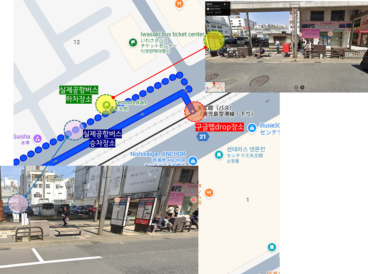 그런데 이 또한 블로그마다 「구글맵과 내리는 데가 달라요.」「공항 올 때 갈 때 같은 데서 버스를 타요.」라고 하고는 블로그 속 사진이나 위치가 달랐어요.