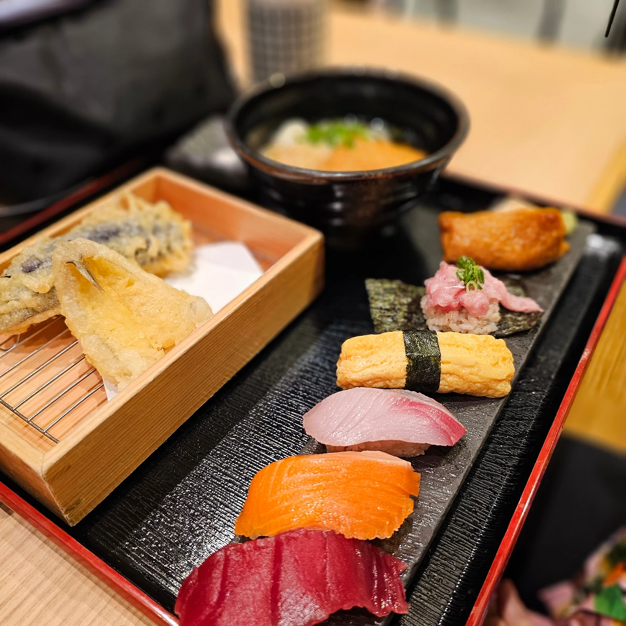 가차샵 옆쪽에 식당이 몇 개 있는데 그 중 '스기다마 센테라스텐몬칸점(鮨 酒 肴 杉玉 センテラス天文館)'의 런치메뉴는 가성비가 좋으니 저처럼 마지막날 호텔 체크아웃 후에 공항버스 타러갈 때 점심도 먹고, 뽑기도 몇 판 해보는 재미 어때요?