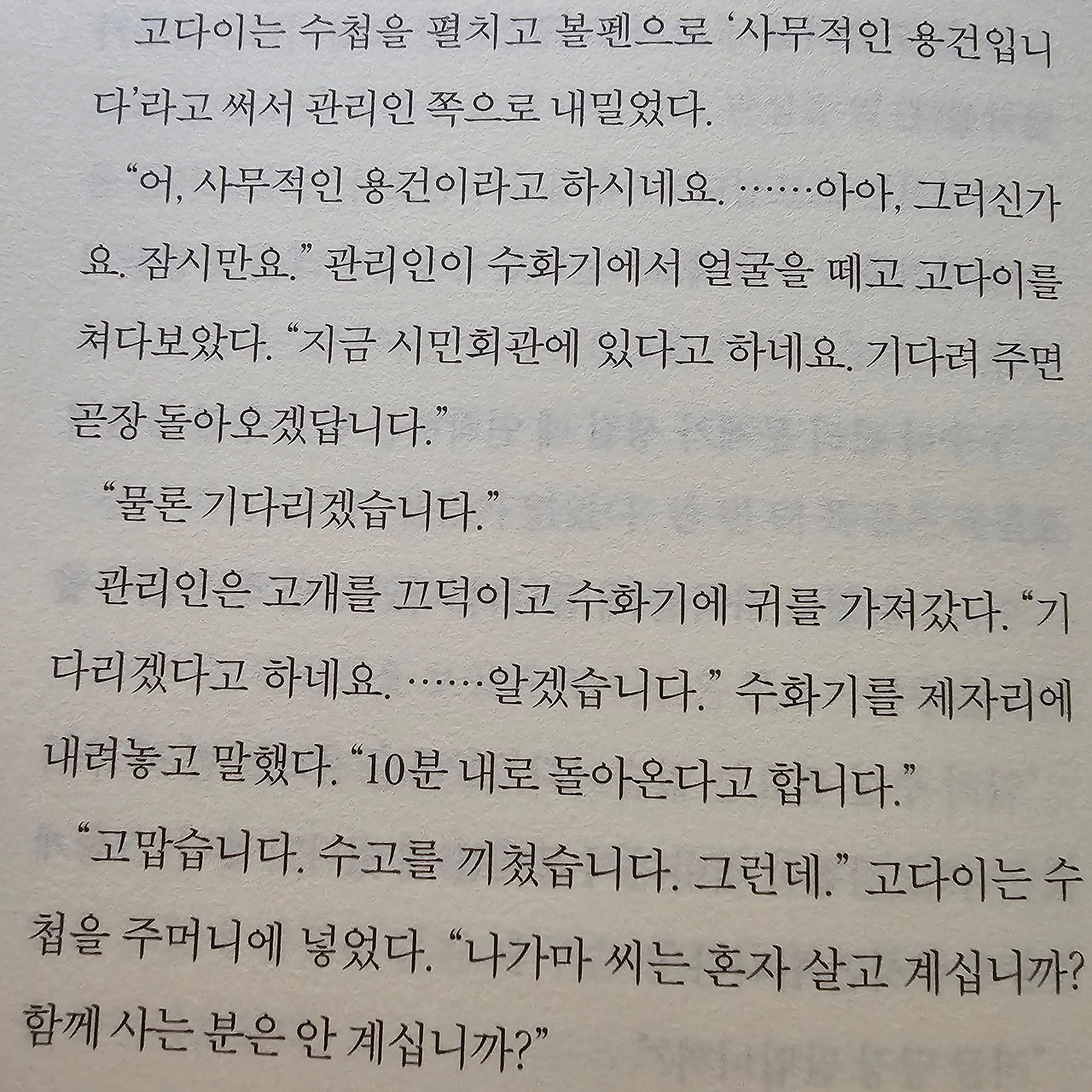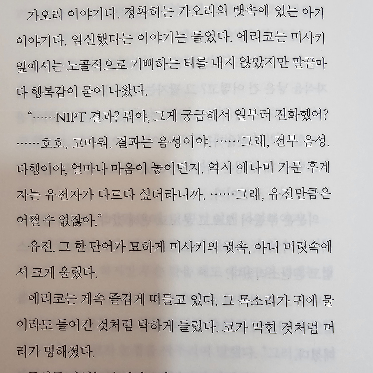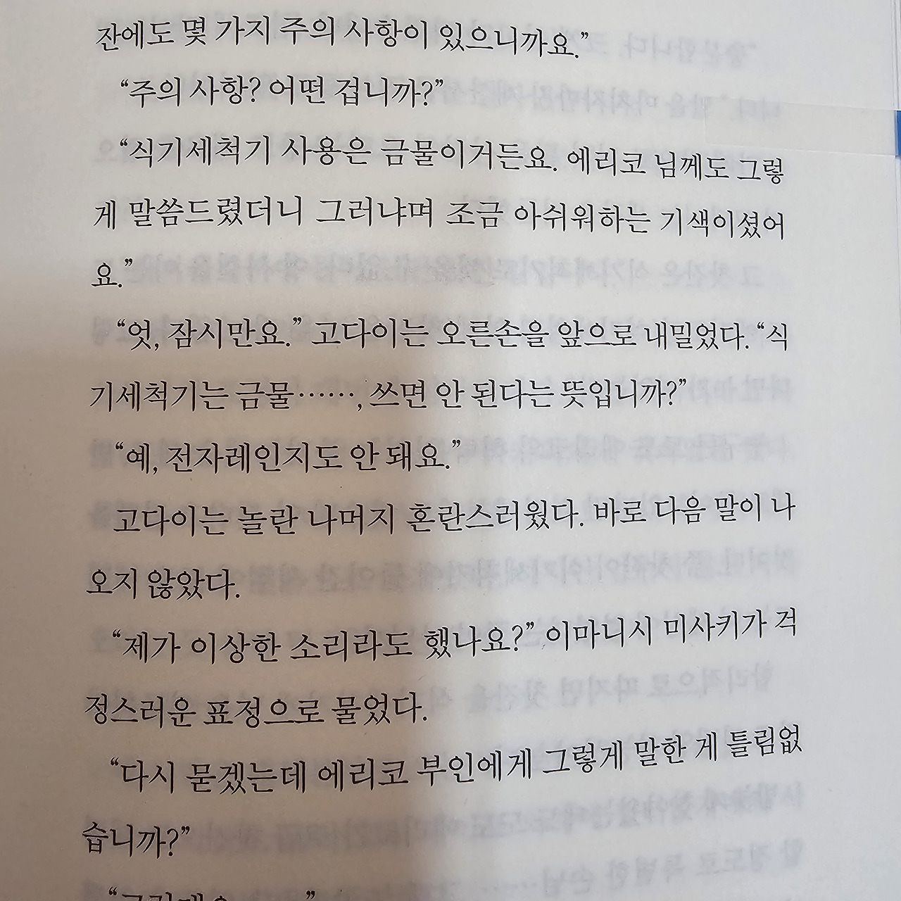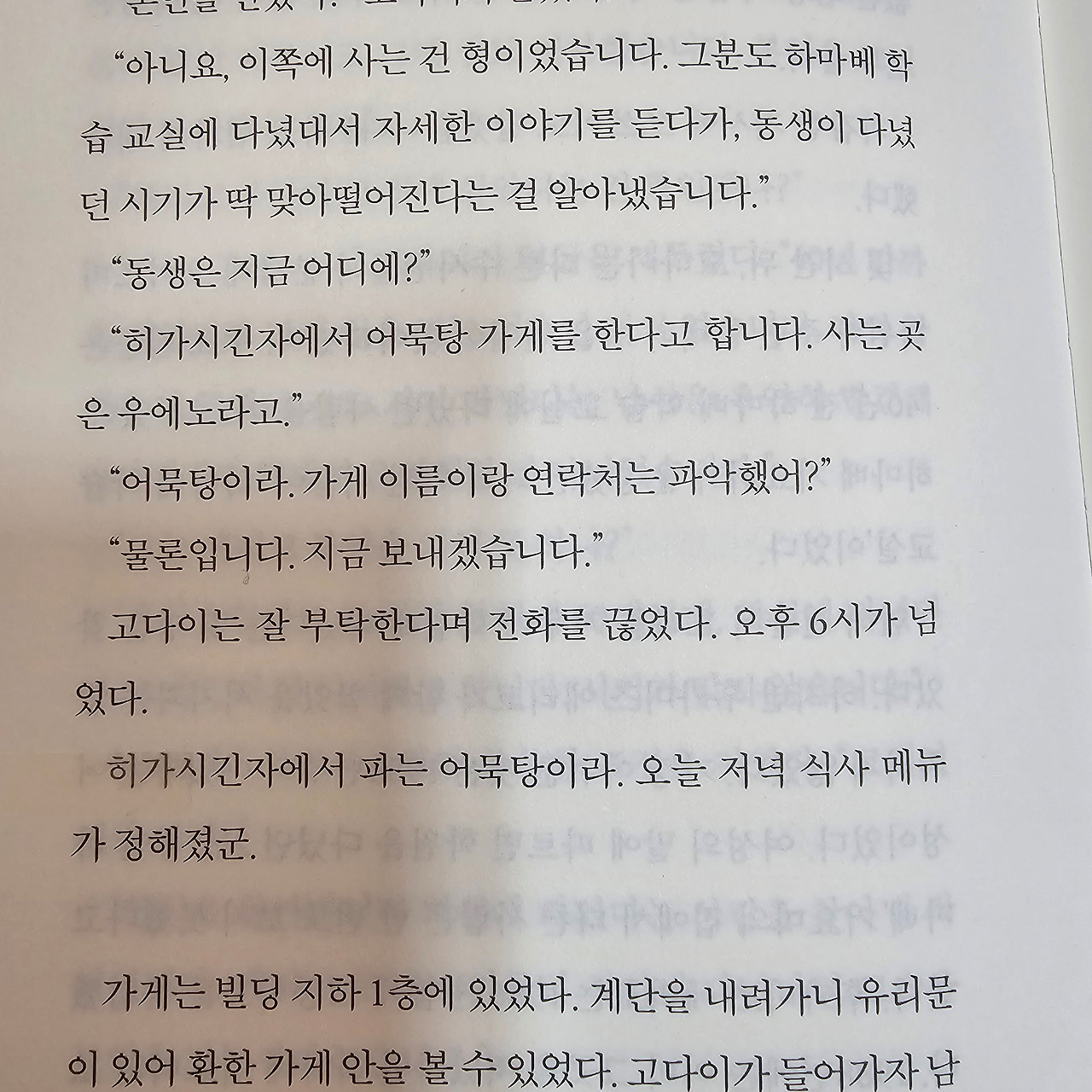일본 스타일을 더 드러내려고 직역처럼 한 건지, 아님 번역가의 스타일인지 모르겠지만 번역의 문체가 몰입감을 떨어뜨리는데 한몫을 한 것 같아 살짝 아쉽다.