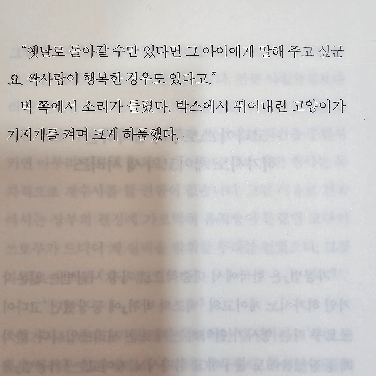 벽 쪽에서 소리가 들렸다. 박스에서 뛰어내린 고양이가 기지개를 켜며 크게 하품했다.