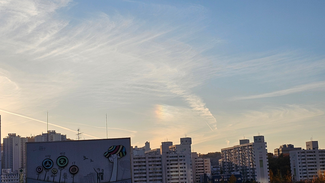 ▲ 대한민국 서울, 살살 펼쳐 놓은 구름 사이 무지개 톡하고 남겨두고 잠자러 가는 해. 오늘도 수고 했다.