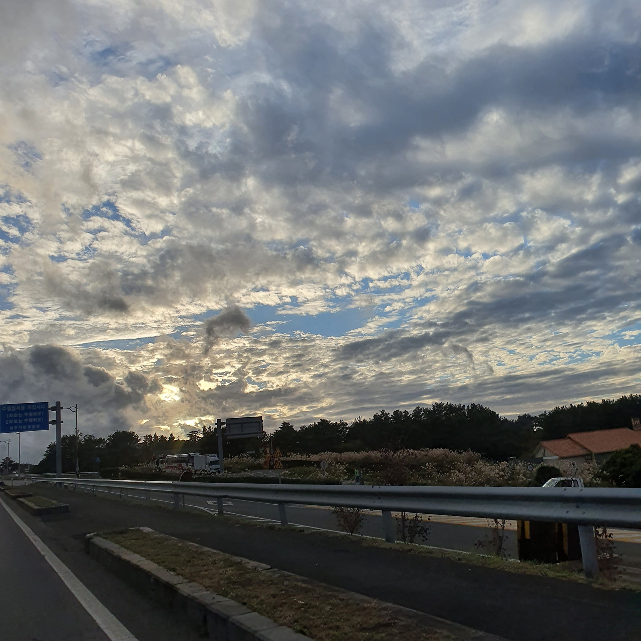 맑은 날의 하얗고 보숭보숭한 뭉게구름의 청량함도, 양탄자같이 보골보골하게 깔려있는 넓은 구름도 예쁘죠.