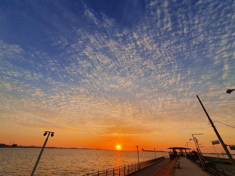 하늘색, 주황색, 핑크색, 연보라색이 오묘하게 섞인 빛 사이로 하얀 구름이 물들 때면 정말 장관입니다. 초단위 분단위로 팔레트 위에 화가가 물감을 이리 섞고 저리 섞는 것처럼 다양하게 변한답니다. 정말 봐도 봐도 질리지 않을 것 같은데 아쉽게도 떨어지는 해는 금방 지기 때문에 고 때를 놓치지 않고 잠깐 하던 일을 멈추고 꼭 봐야만 한다는 사실, 잊지 마세요!