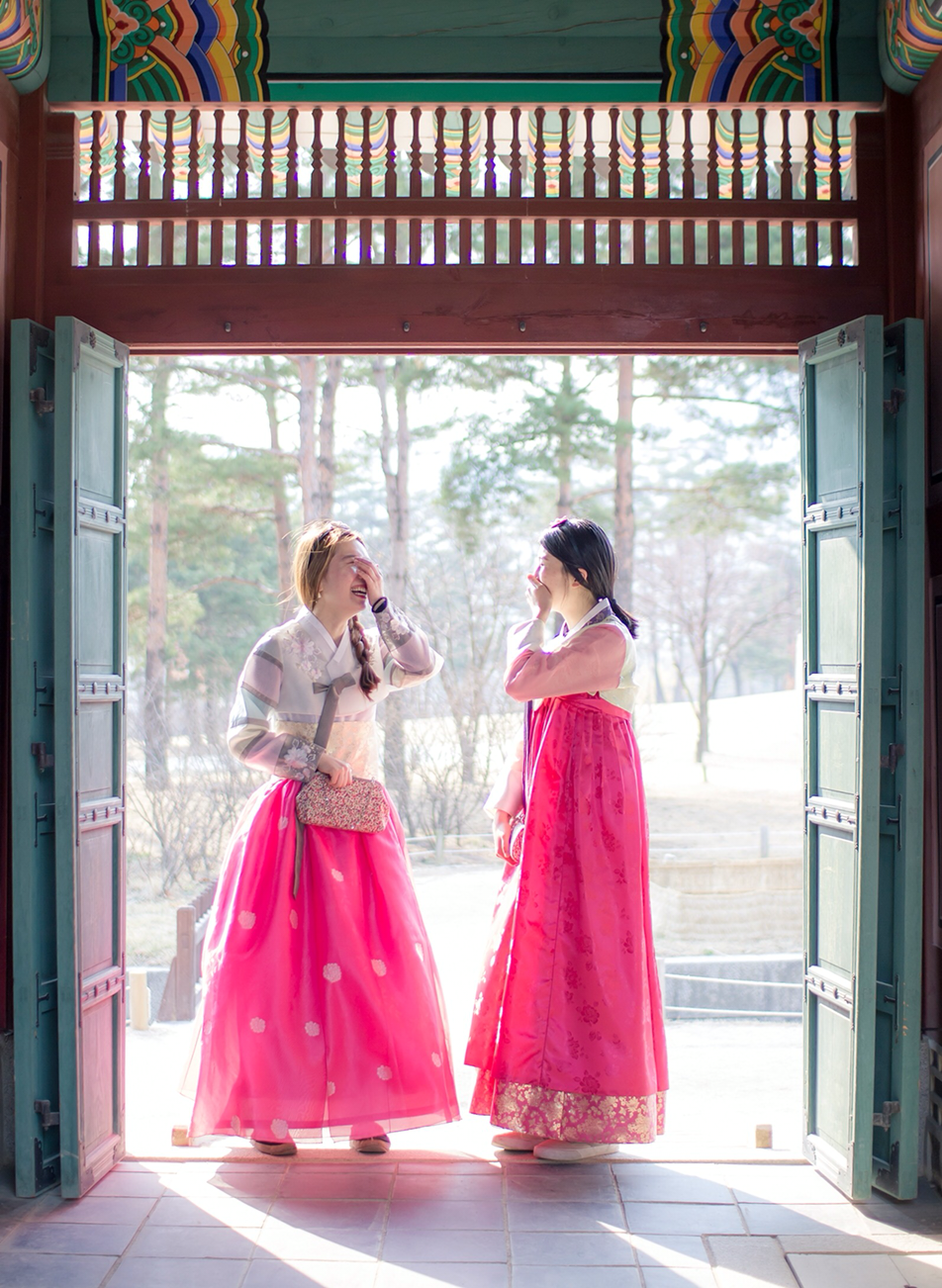 그때 혼자 출사를 온 듯한 청년이 말을 걸었다. 인물사진을 좋아하는 학생이라고 했다. 약간의 경계심과 당황스러움과 어색함이 겹쳐 어버버 하는 우리에게 그는 포즈를 주문하기 시작했고, 그 열정적인 디렉팅에 끌려 얼떨결에 시키는 대로 했더니 어느새 나는 문간에 기대 눈을 지그시 감고 지아비를 기다리는 규수 같은 포즈를 취하고 있었다. 뭐 유명한 사람들인가 하고 잠깐 구경하던 행인들이 우리 얼굴을 보고는 '아니구나' 하는 표정으로(...) 지나갔다. 그는 사진을 보내주겠다며 우리의 메일 주소를 받아갔고, 함께 셀카를 찍고는 사라졌다. 당연히 우리는 탈진하기 직전까지 웃었고, 이미 무척 즐거웠으니 사진을 받지 못해도 좋다고 생각했다. 내가 언제 카메라 앞에서 경복궁을 떠돌아다니는 조선 여인의 혼령 같은 포즈를 취한단 말인가.